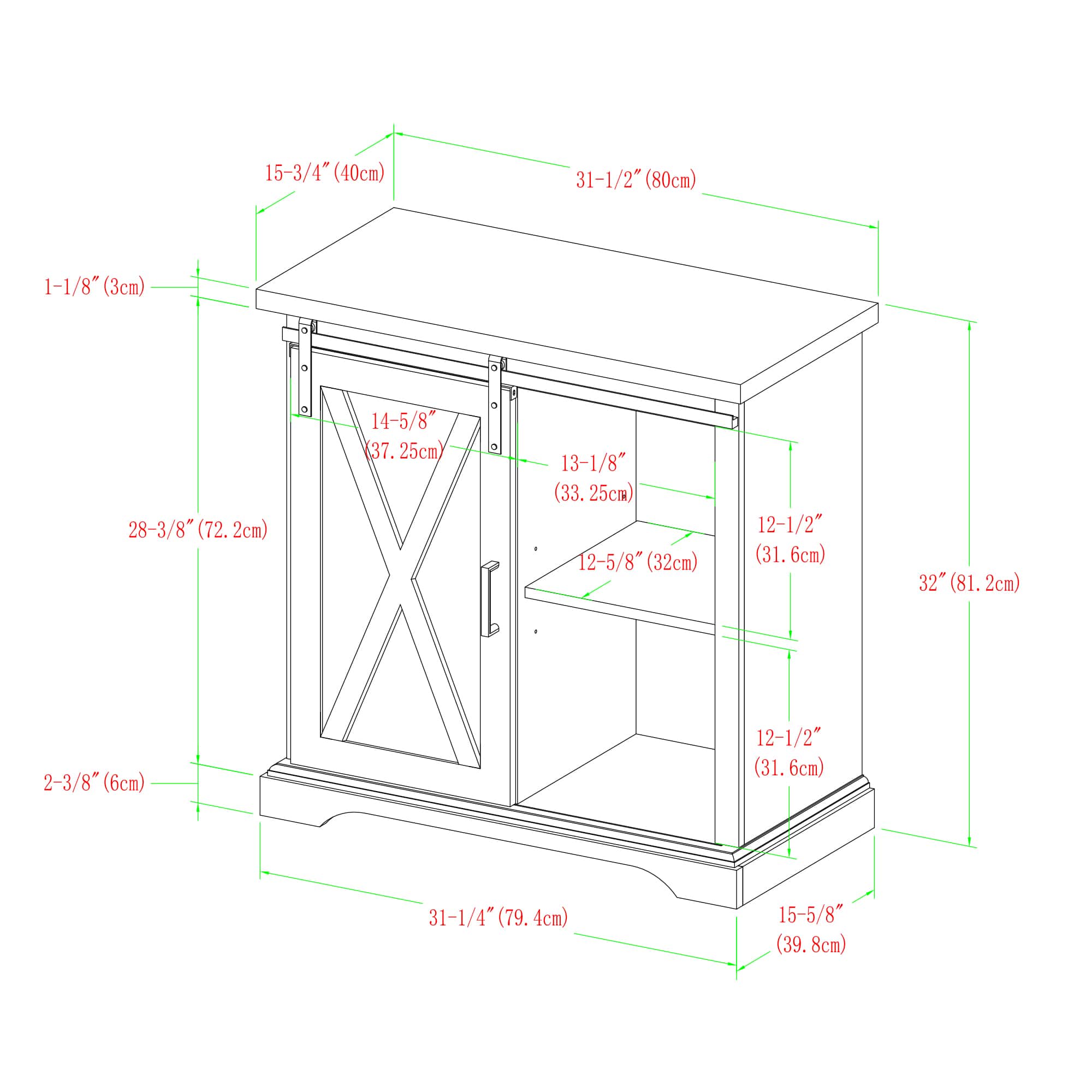 Walker Edison 32" White Oak Sliding Barn Door Farmhouse Accent Cabinet