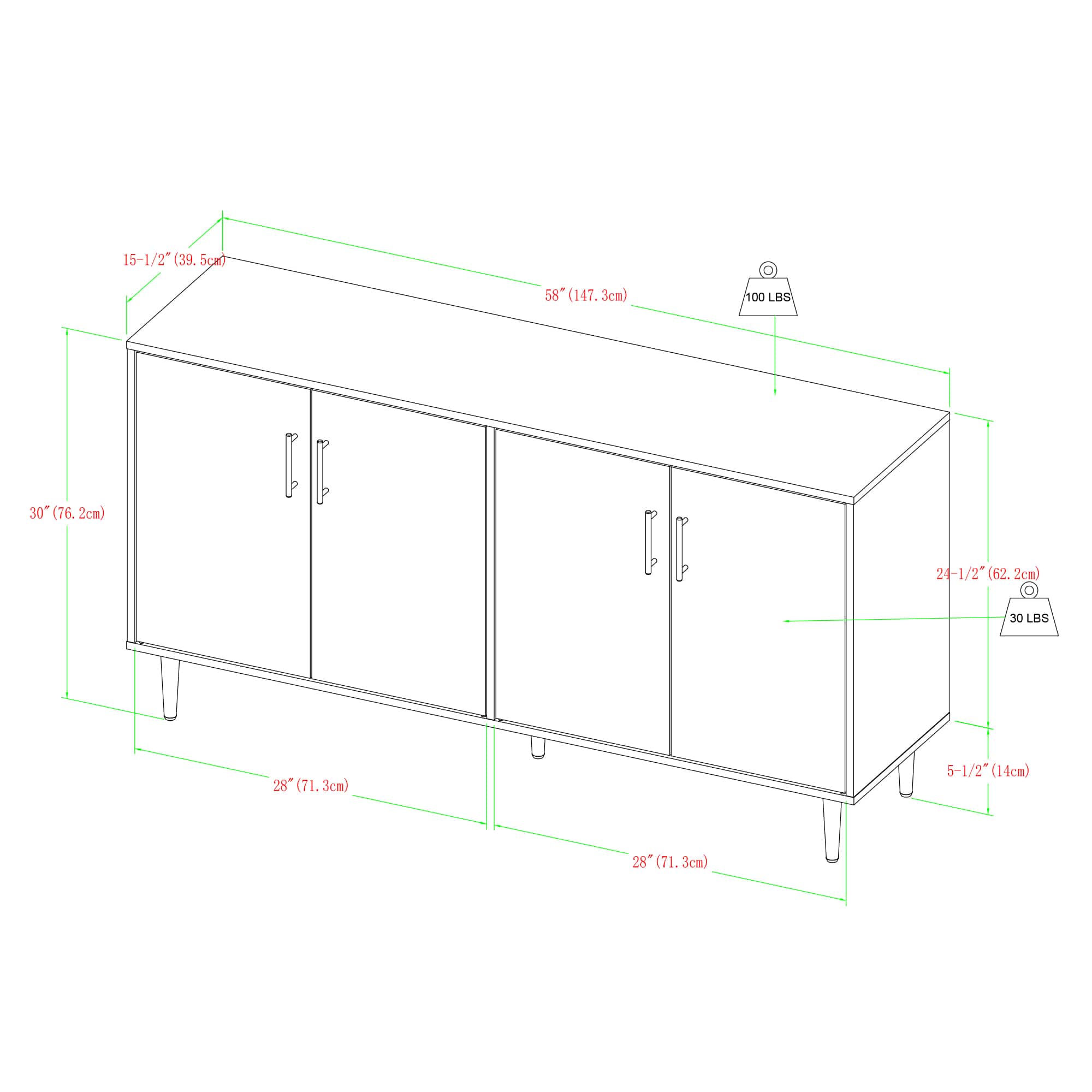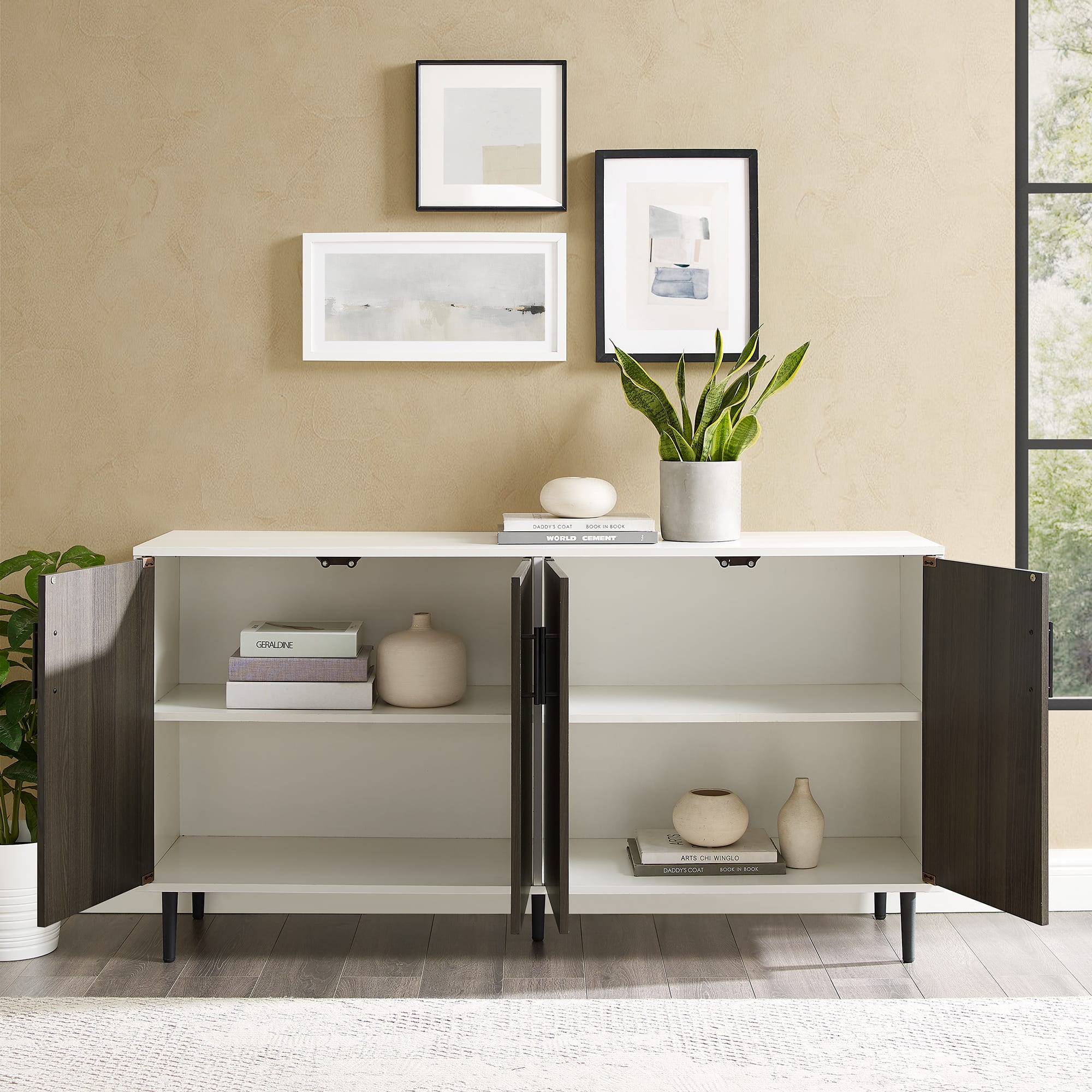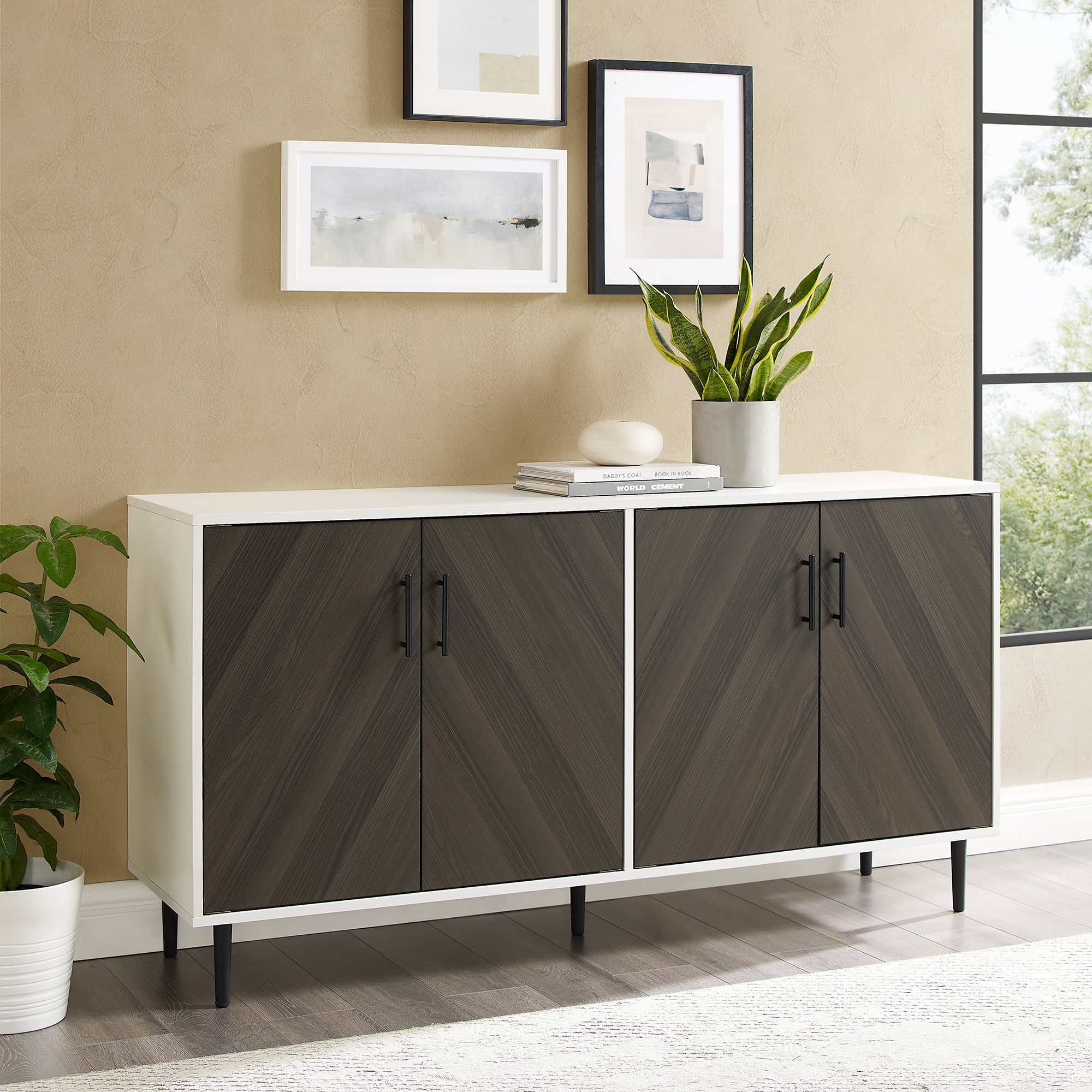 Walker Edison 58" Ash Brown Bookmatch & White Mid Century Modern TV Buffet
