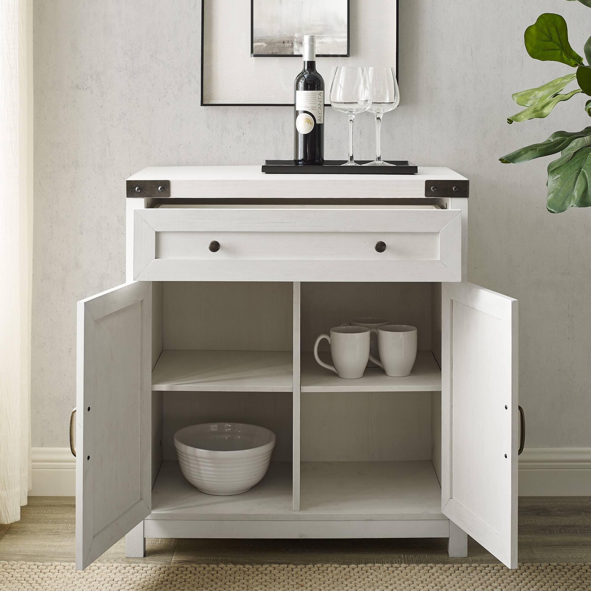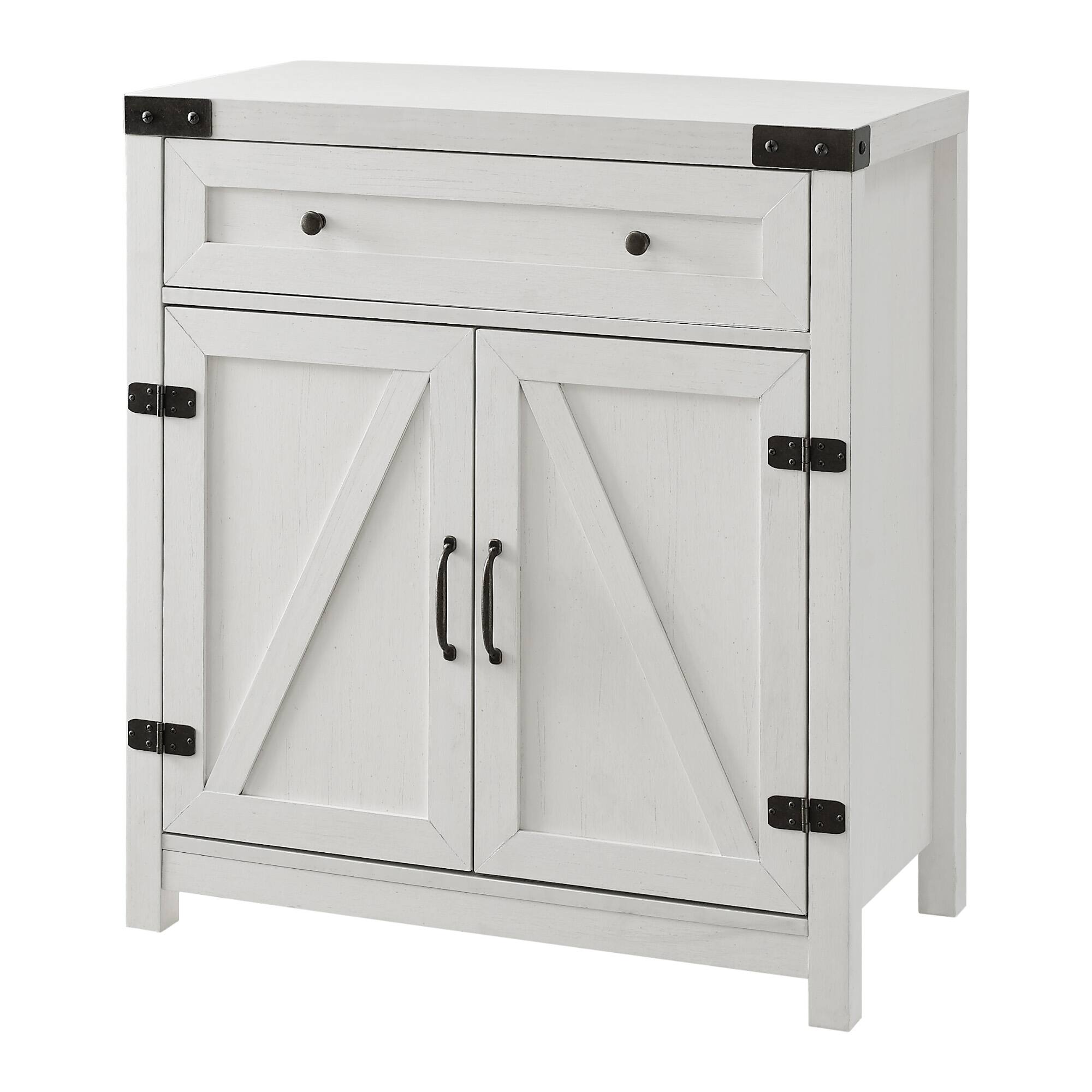 Walker Edison Brushed White Farmhouse Barn Door Accent Cabinet
