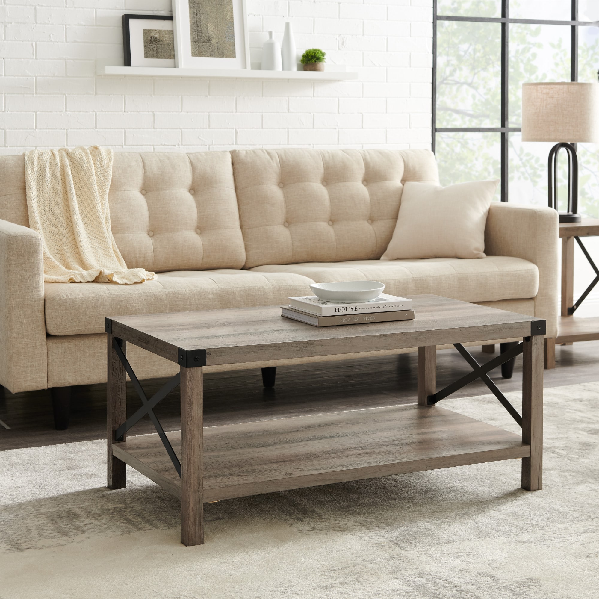 Walker Edison Gray & Black Metal & Rustic Wood Coffee Table