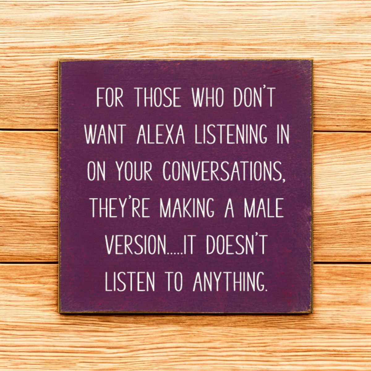 Wall Decor Sign 'Non-Listening No Alexa Features' Rustic Knotty Pine 7x7 Inch