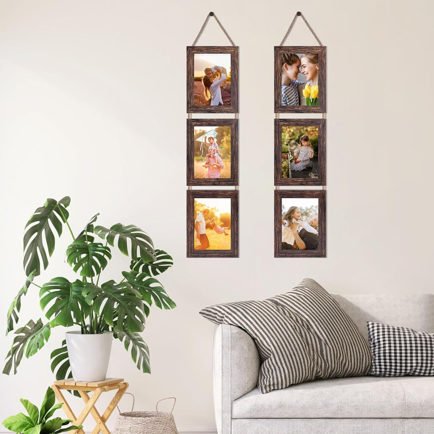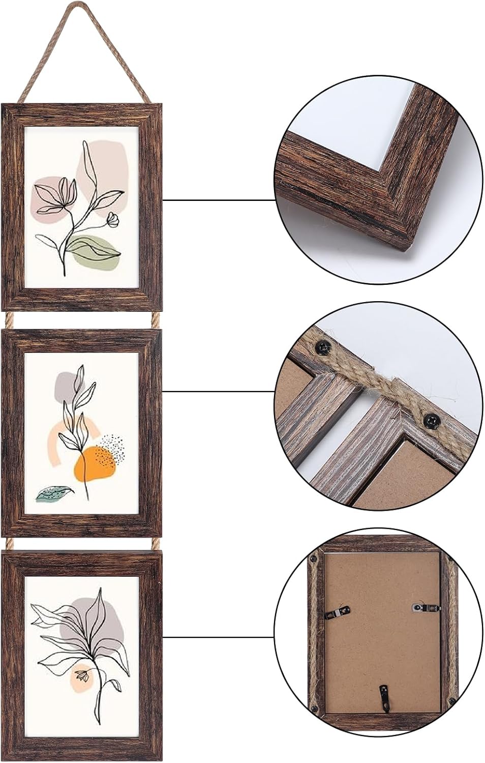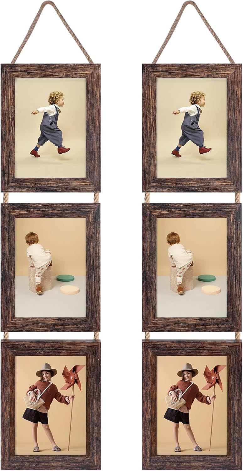 Wall Hanging 5x7 Picture Frames Set of 2, Vertical Collage Distressed Brown Triple Frame(Distressed Brown)7"L x 5"W