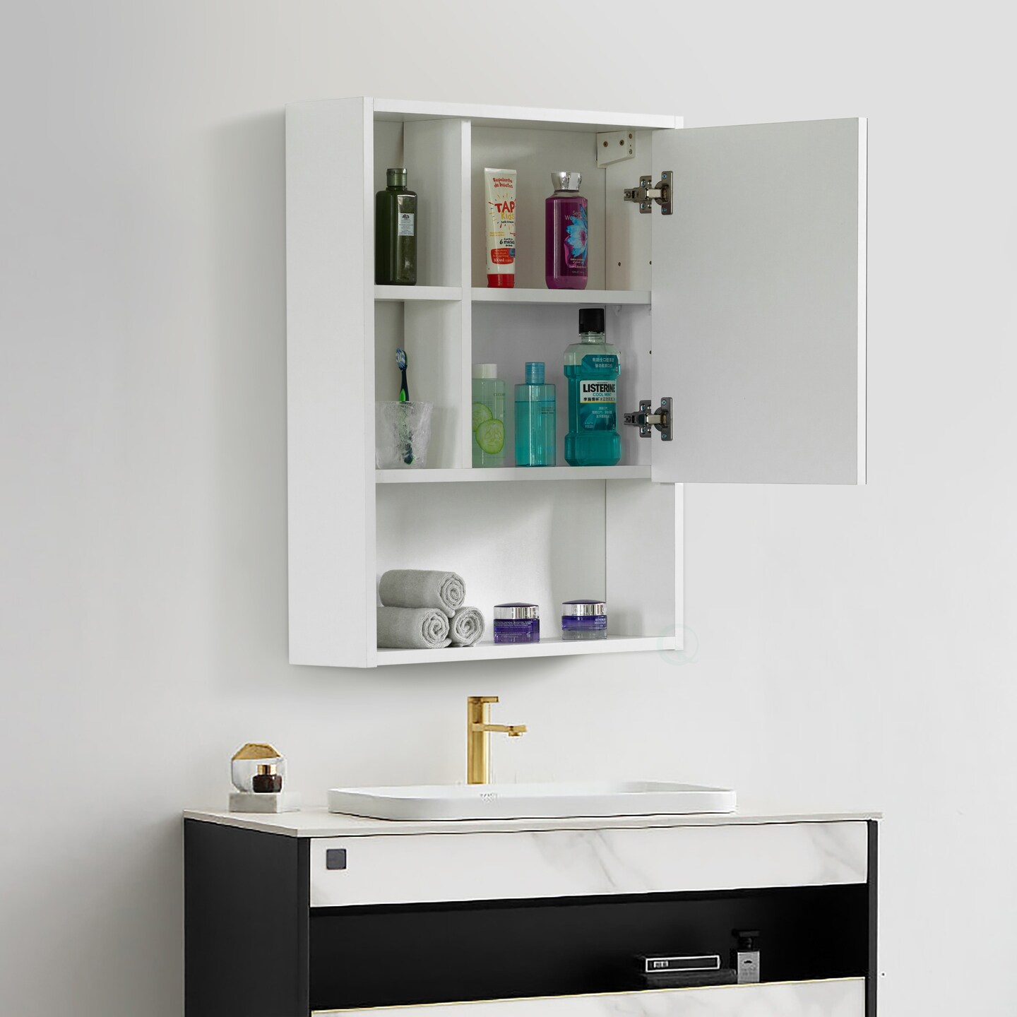 Wall Mount Bathroom Mirrored Storage Cabinet with Open Shelf | 2 Adjustable Shelves Medicine Organizer Storage Furniture for Bathrooms, Kitchens, and Laundry Room