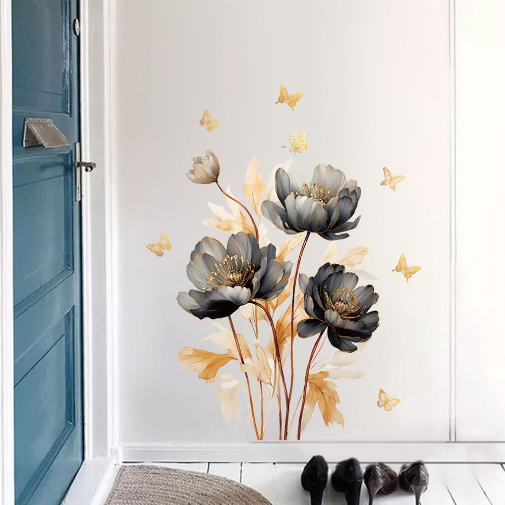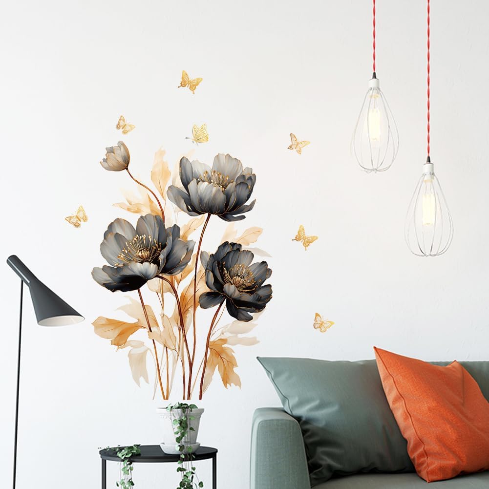 Wall Stickers Lnk Lotus Butterfly Wall Decals - Black Gold