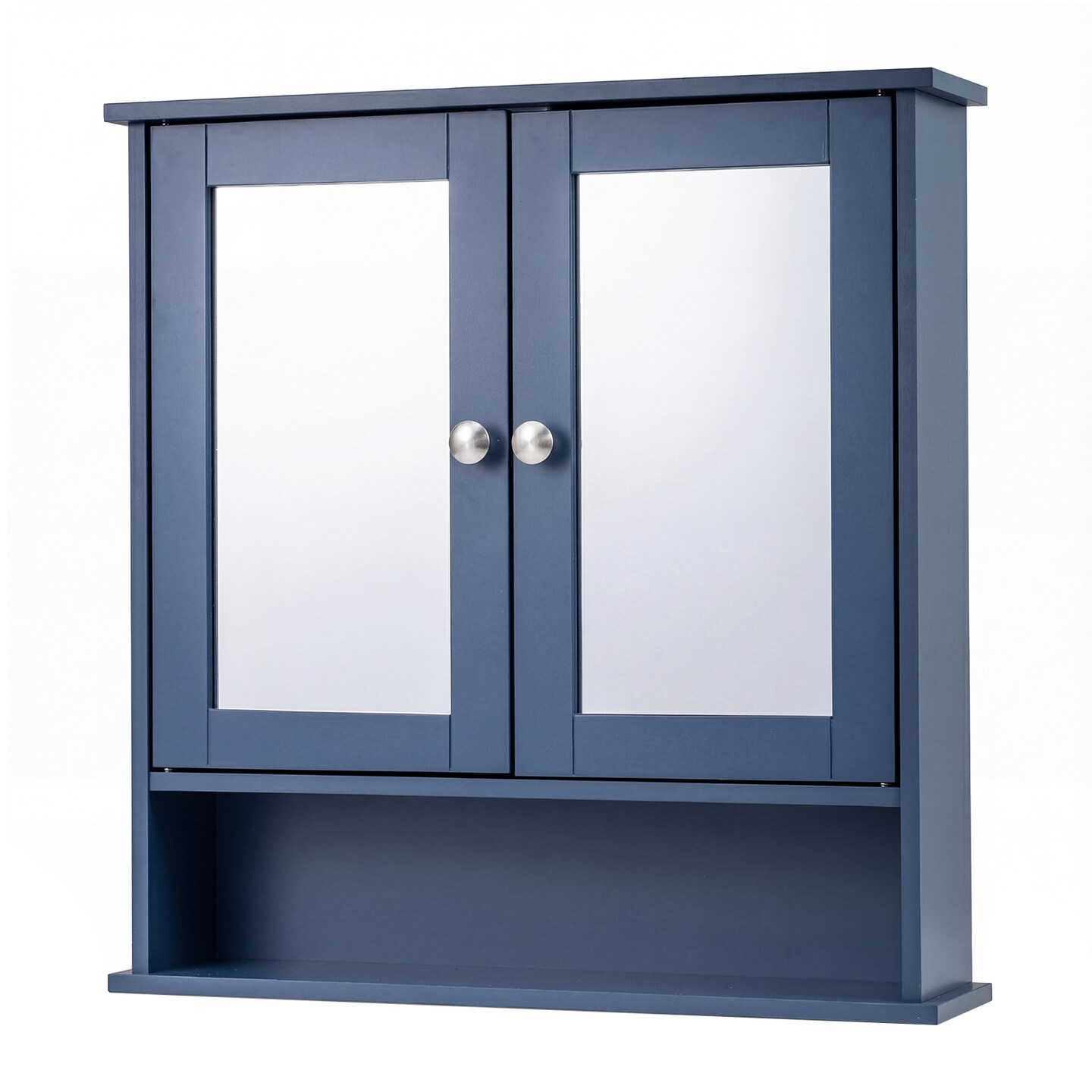 Wall-Mounted Cabinet Bathroom Storage MDF Glass Double Doors Mirror Adjustable Shelf Blue