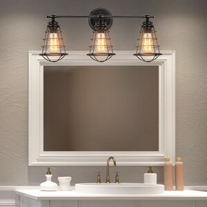 Wall-Mounted Industrial 3-Head Birdcage Lamp Vintage Wrought Iron Sconce for Bathroom, Living Room, or Entryway