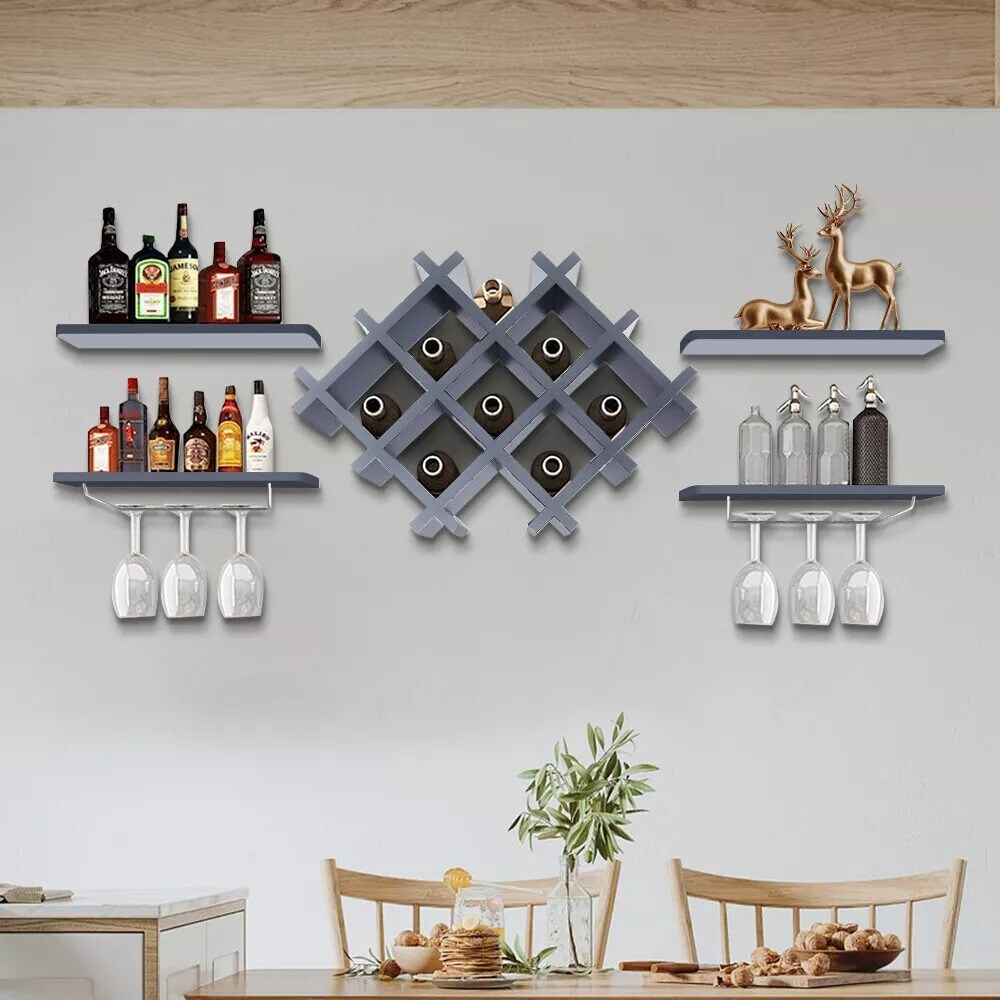 Wall-Mounted Wine Rack Bottle Glass Holder Bar Accessory Storage Shelf Rack