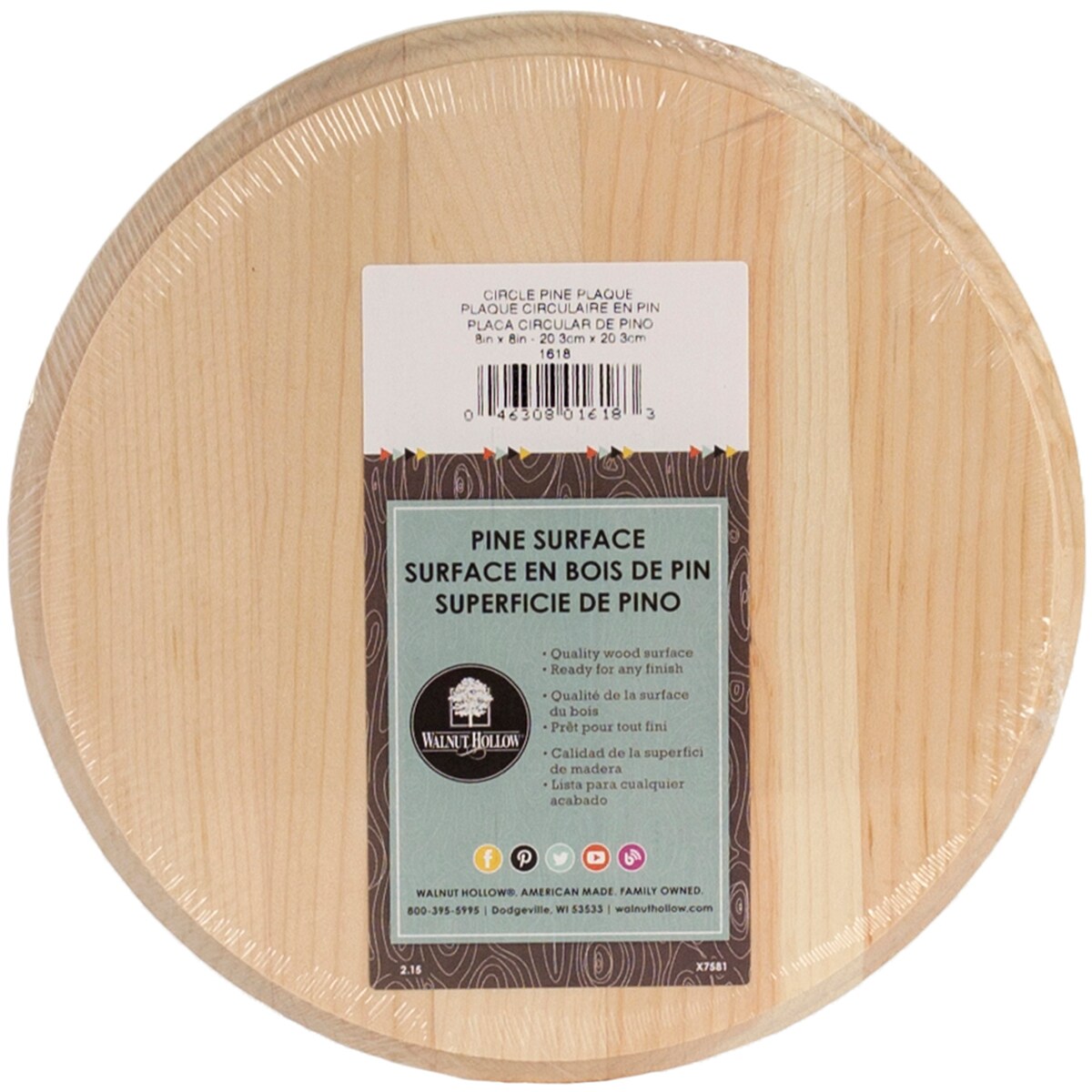 Walnut Hollow Pine Circle Plaque-8"X8"X.63"