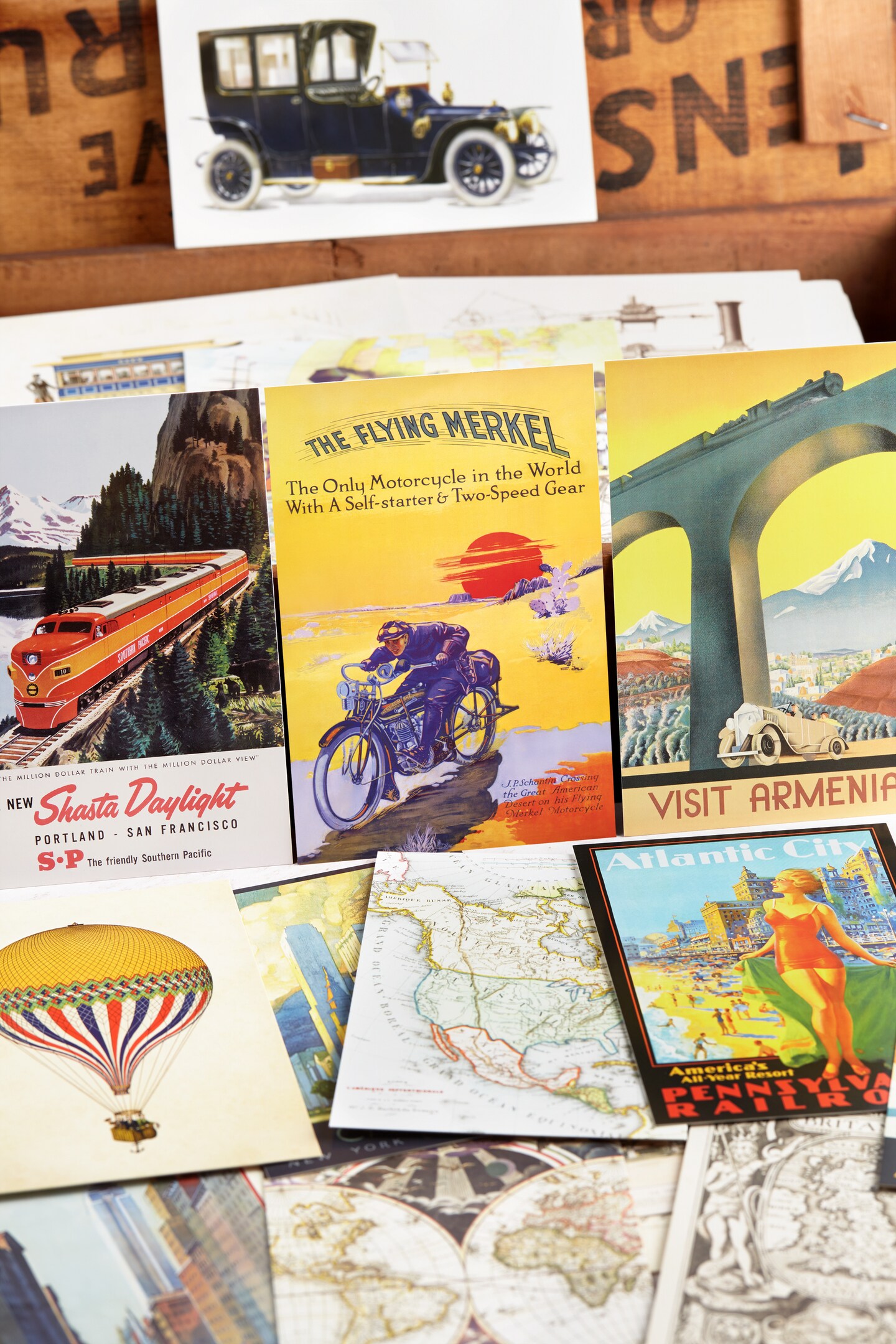 Wanderer's Voyage Postcard Set: Pack of 30 Retro Style Travel and Transportation Postcards