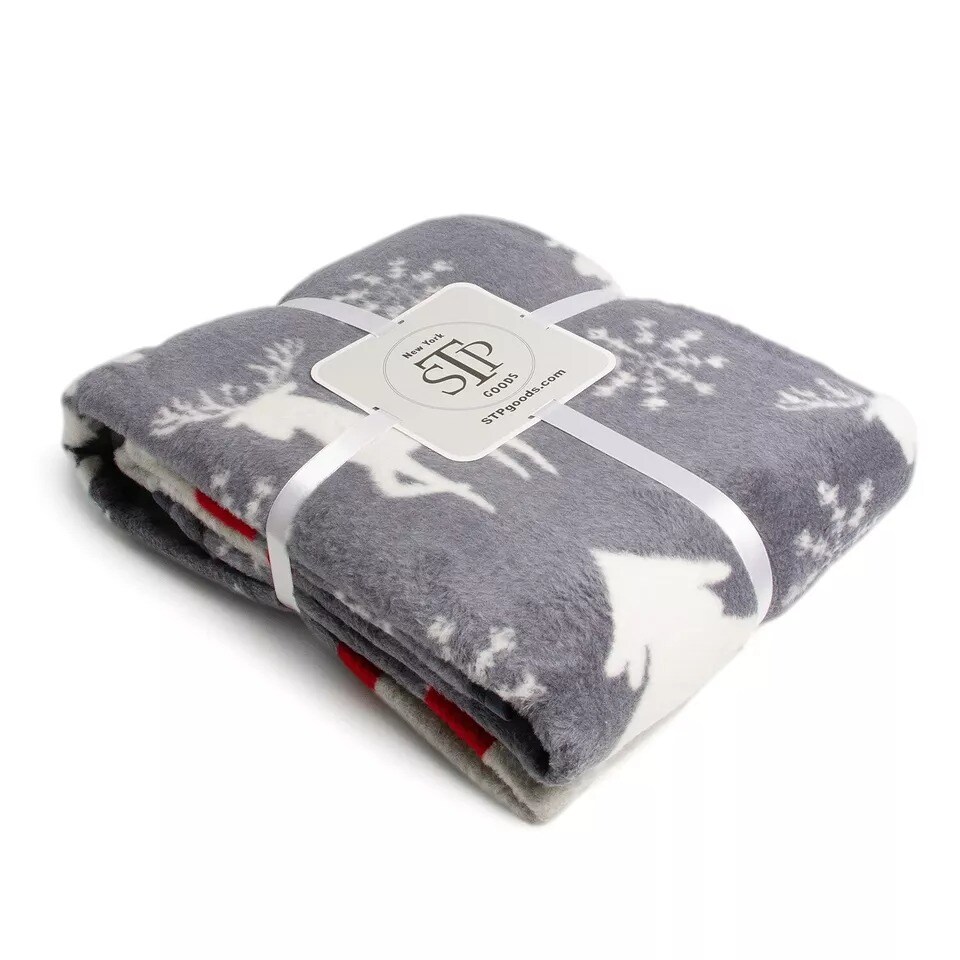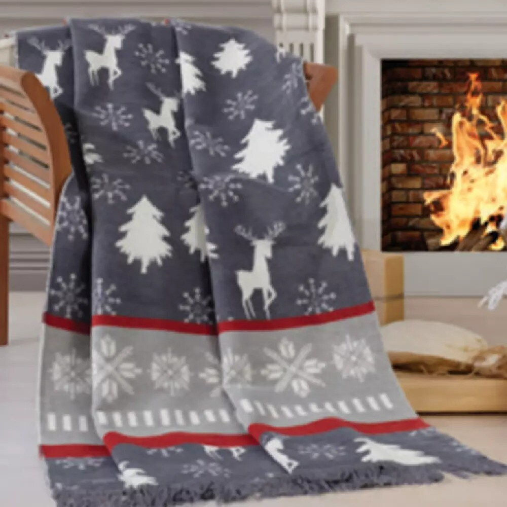 Warm Christmas Throw Blanket Soft Cozy Cotton Throw Snowflakes Breathable 87x63"