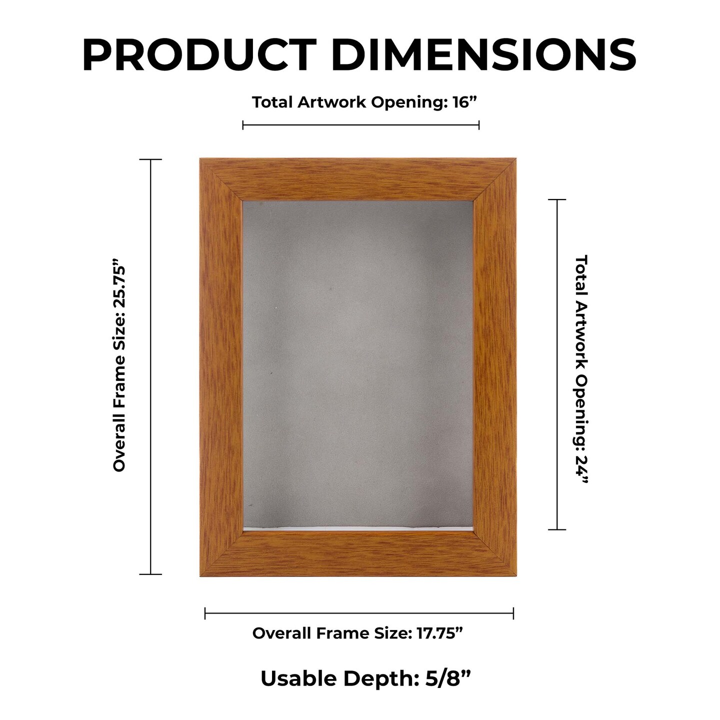 Warm Honey Brown Wood Shadow Box Frame with Acrylic Front - Light Brown Suede Backing, 30 Sizes