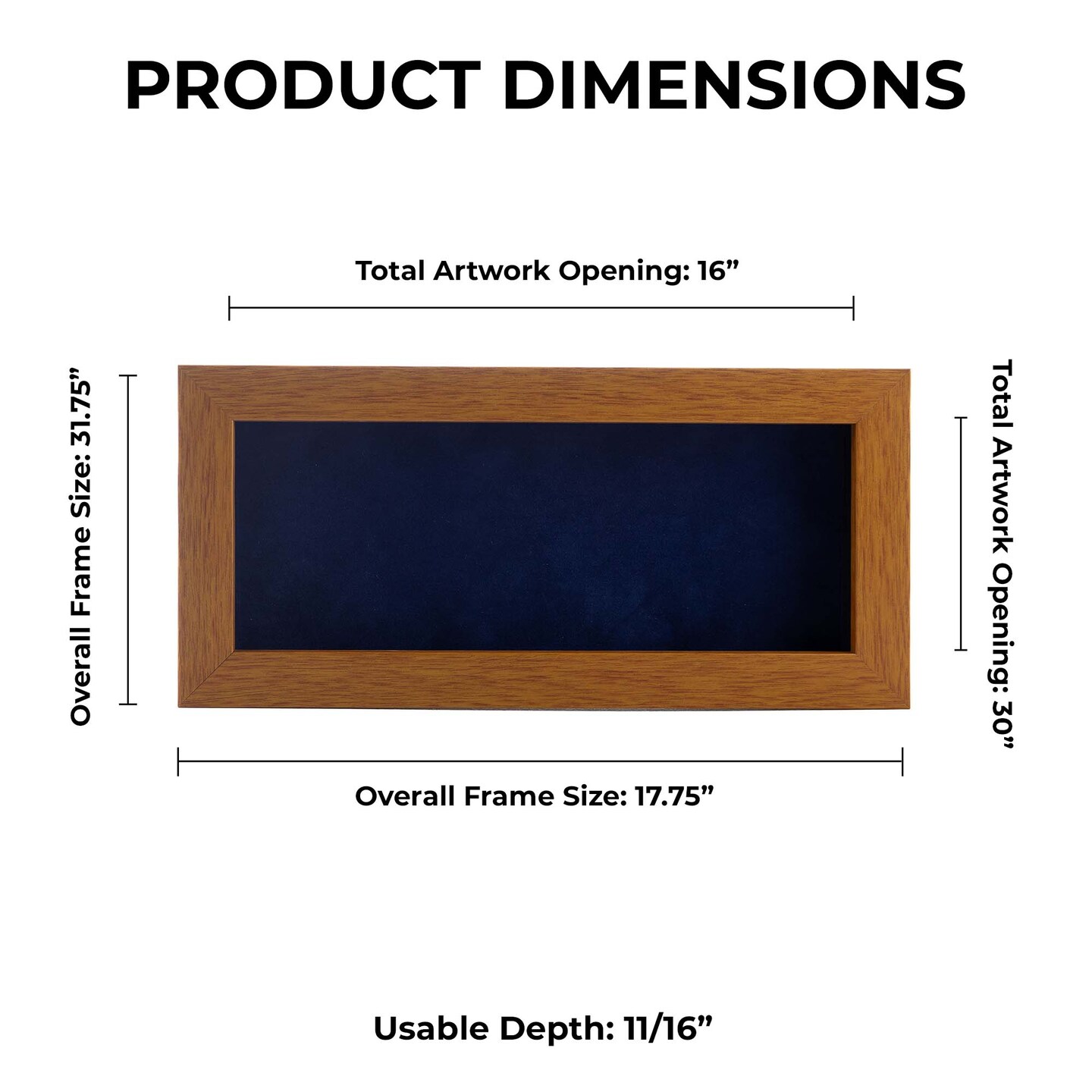Warm Honey Brown Wood Shadow Box Frame with Acrylic Front - Navy Blue Suede Backing, 30 Sizes