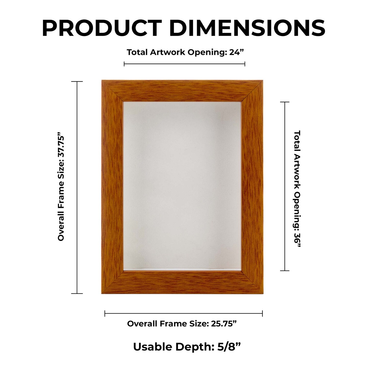 Warm Honey Brown Wood Shadow Box Frame with Acrylic Front - White Suede Backing, 30 Sizes