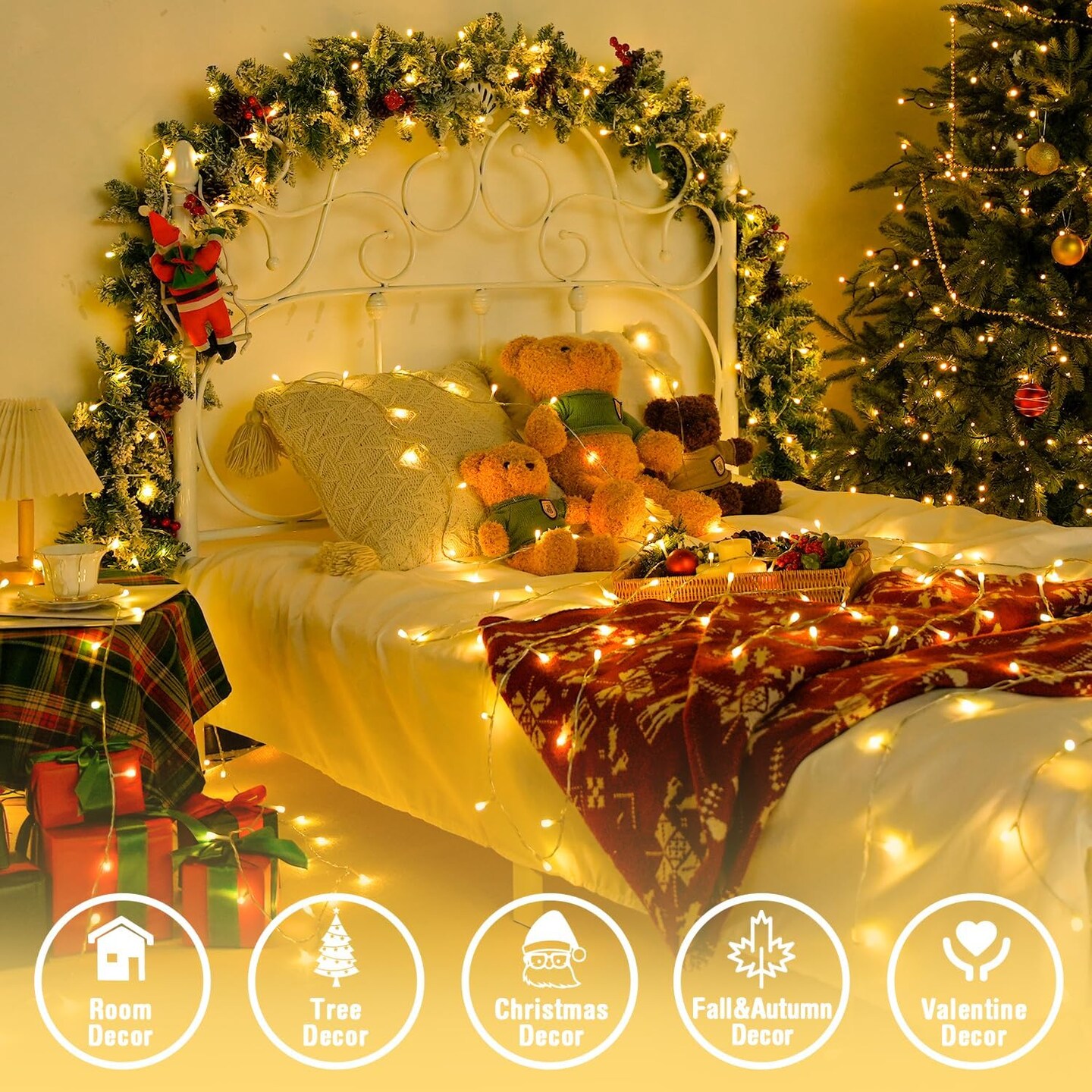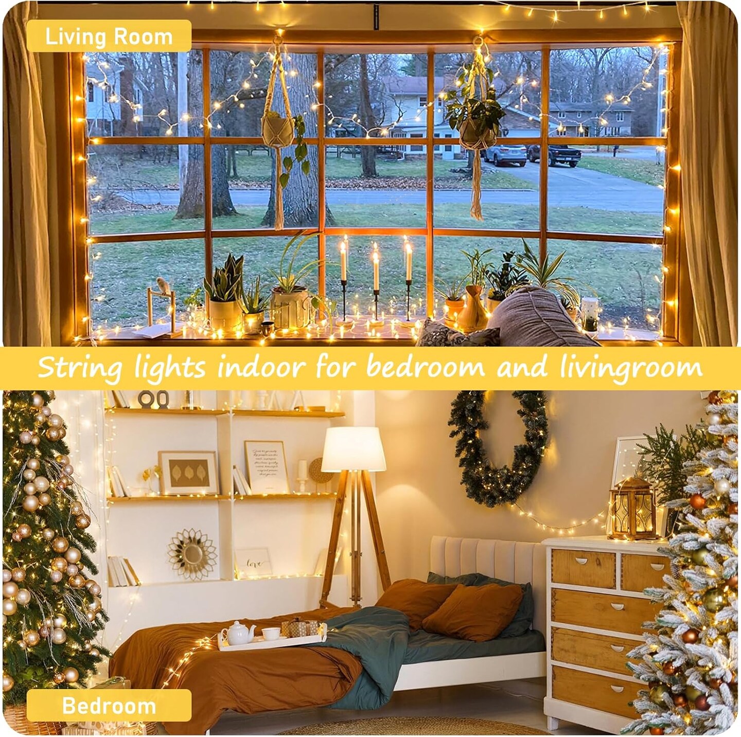 Warm White Christmas Lights – 200 LED, 66ft Plug-in Twinkle String Lights, Extendable, Indoor & Outdoor for Bedroom, Porch, Patio, Yard, Thanksgiving & Holiday Decor (Warm White)