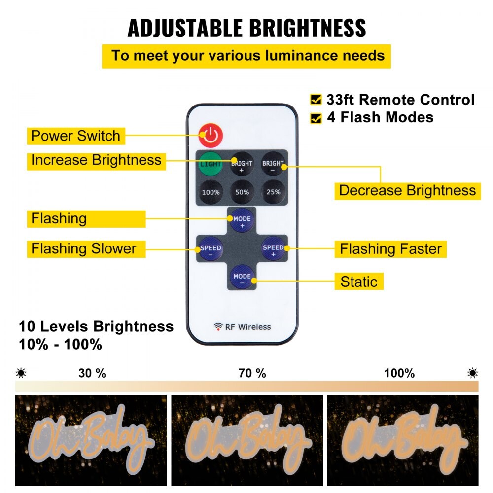 Warm White Silicone Acrylic Neon Sign, 4 Flash Modes, Adjustable Brightness