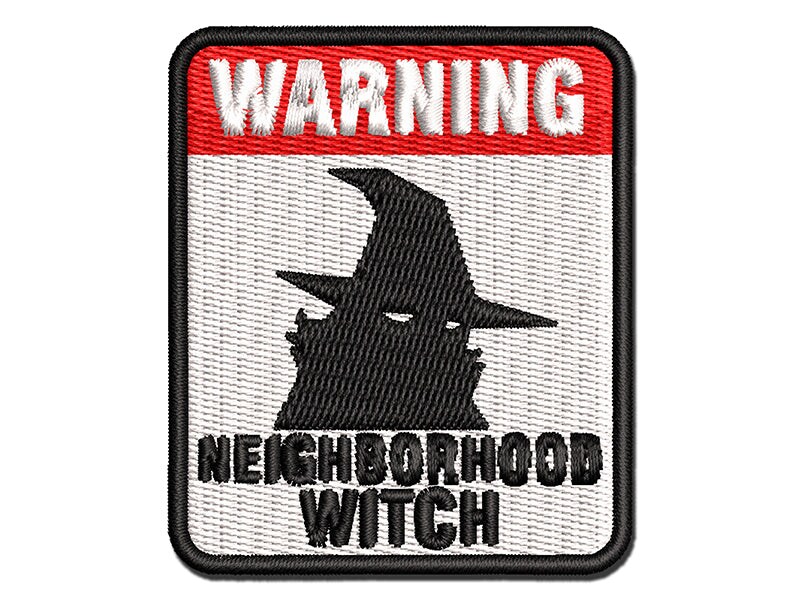 Warning Neighborhood Witch Halloween Sign Multi-Color Embroidered Iron-On or Hook & Loop Patch Applique