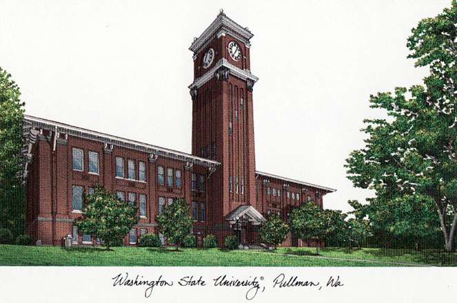 Washington State University 11w x 8.5h Manhattan Black Single Mat Gold Embossed Diploma Frame with Bonus Campus Images Lithograph (value savings at $59)