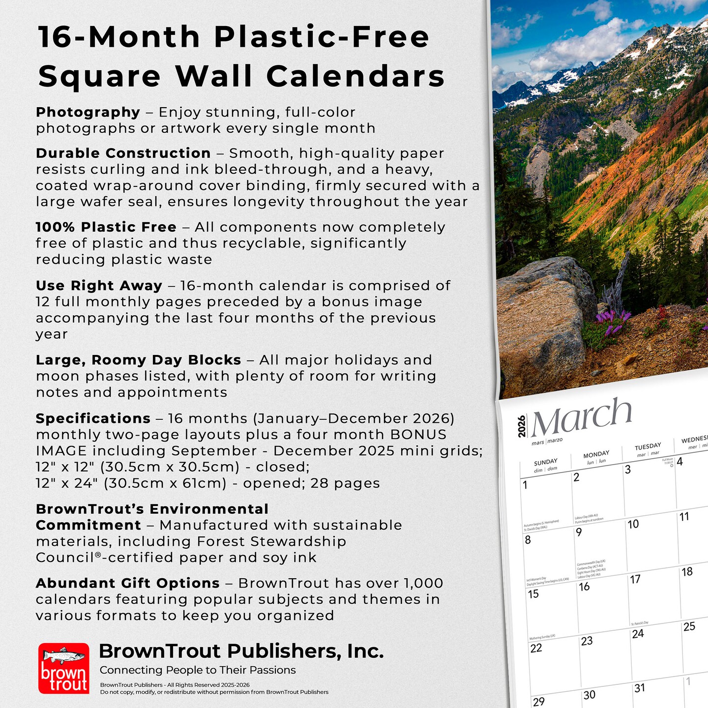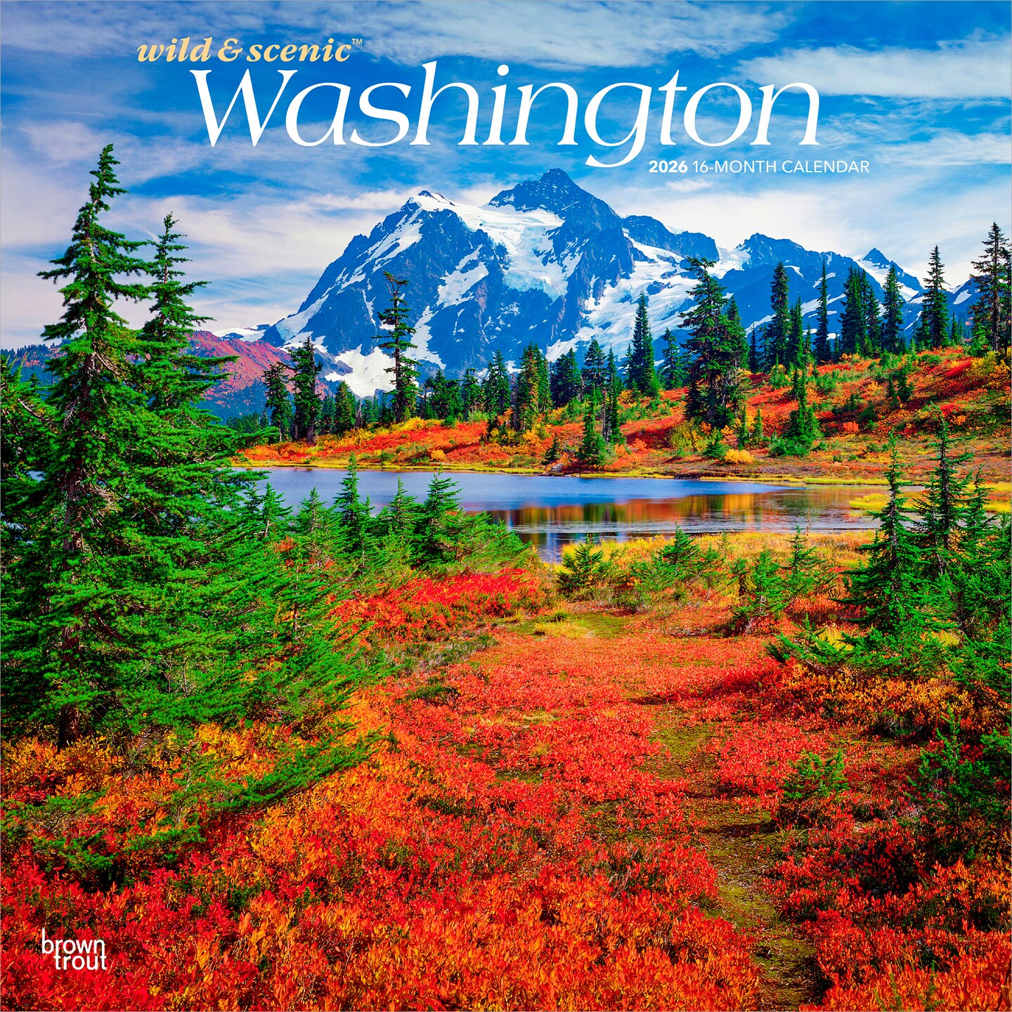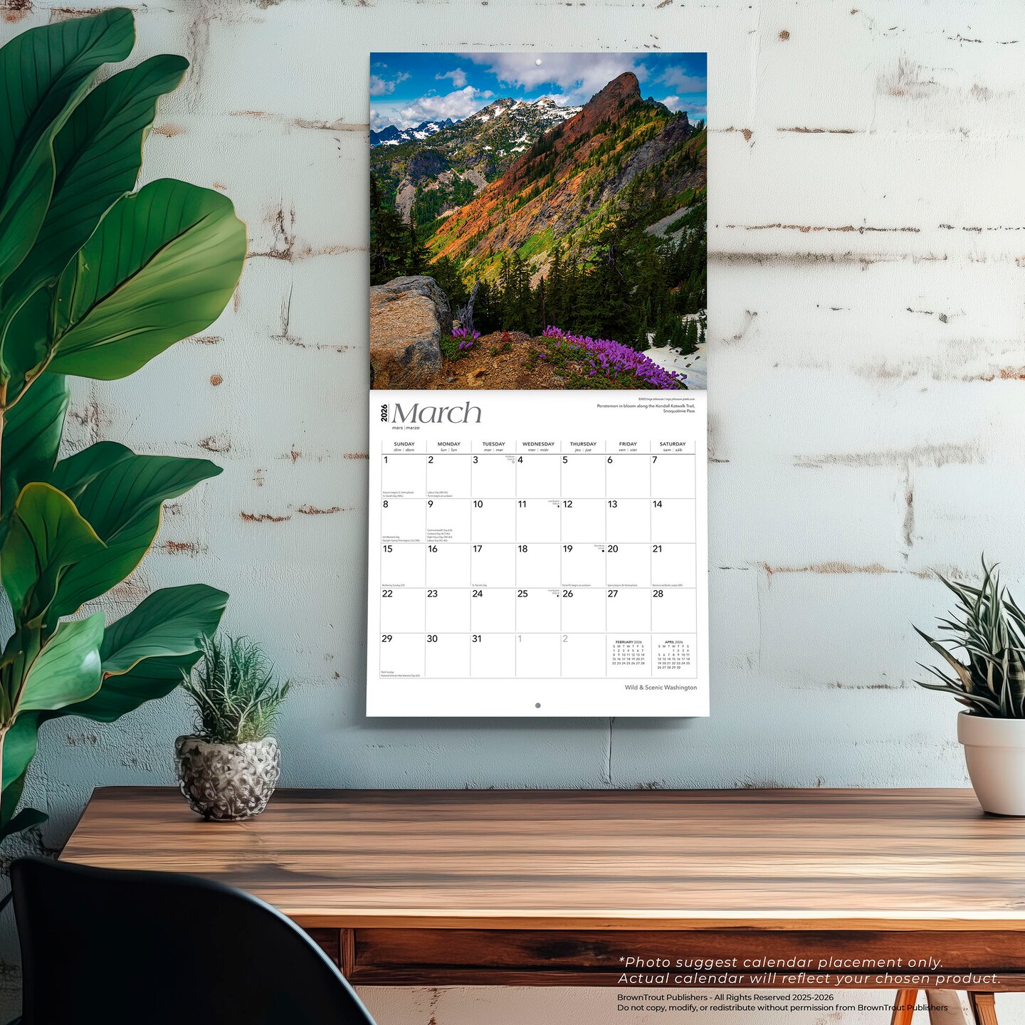 Washington Wild & Scenic | 2026 12 x 24 Inch (Hanging) Monthly Square Wall Calendar | Plastic-Free