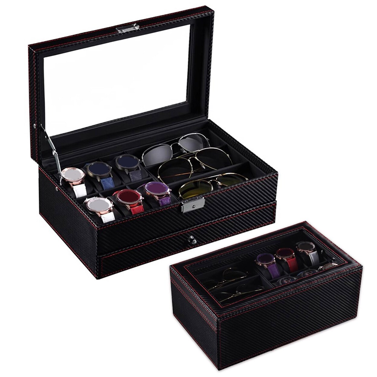 Watch Box Sunglasses Organizer Large Capacity Multiple Compartments Window Design Watch Holder Stand Storage Case With