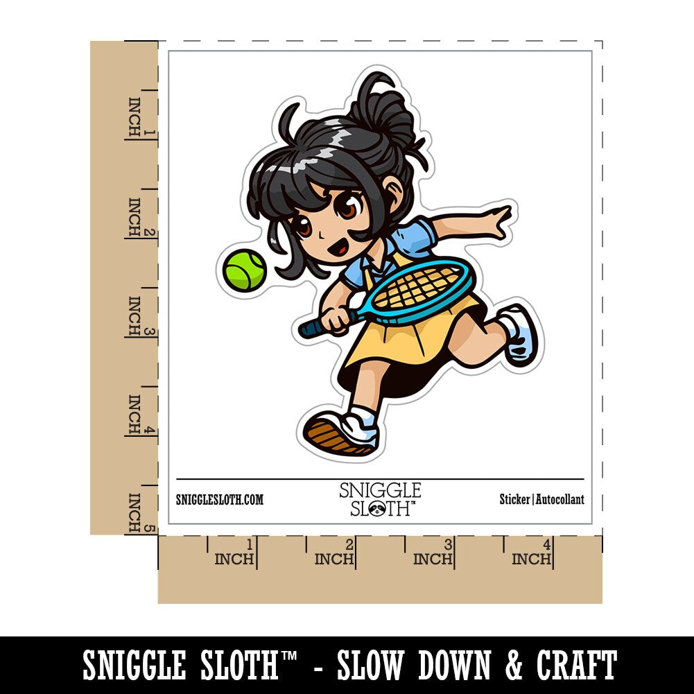 Water Bottle Sticker Set Cute Tennis Girl Ball Chibi Sports Cute Waterproof Vinyl Stickers Pack Decal, Skateboard, Laptop, Car, Window, Bumper - 5 Pack