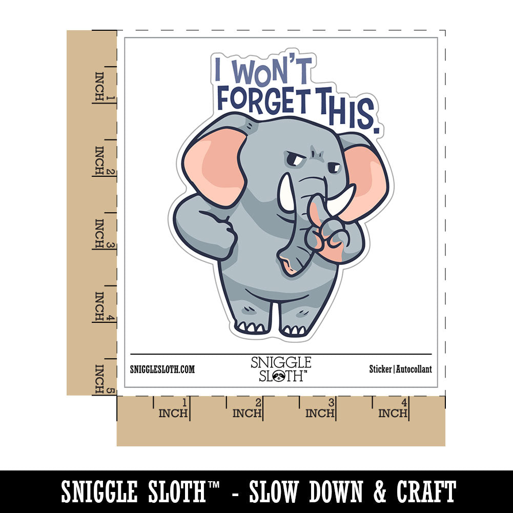 Water Bottle Sticker Set I Wont Forget This Elephant Cartoon Cute Waterproof Vinyl Stickers Pack Decal, Skateboard, Laptop, Car, Window, Bumper - 5 Pack