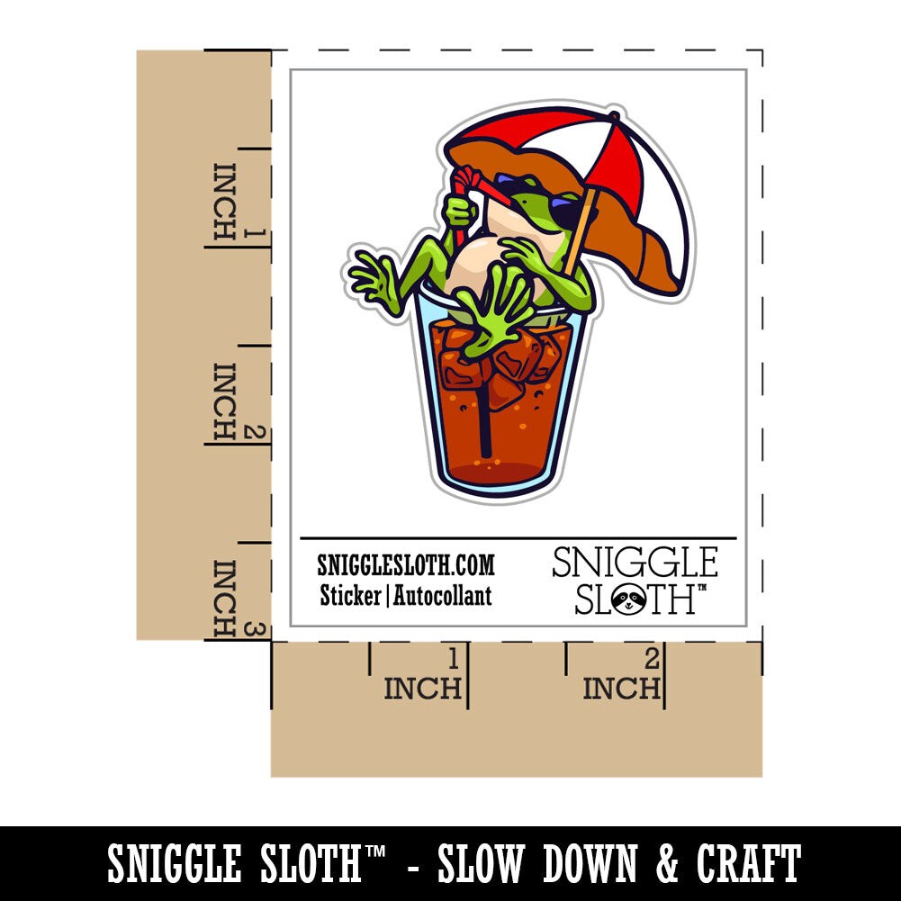 Water Bottle Sticker Set Vacation Frog Sitting In Drink Under Umbrella Cute Waterproof Vinyl Stickers Pack Decal, Skateboard, Laptop, Car, Window, Bumper - 5 Pack
