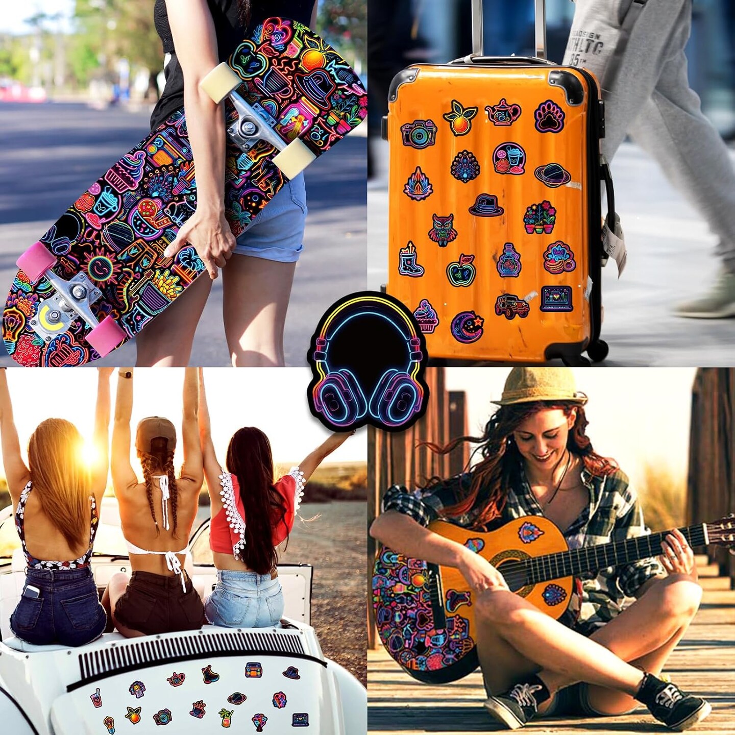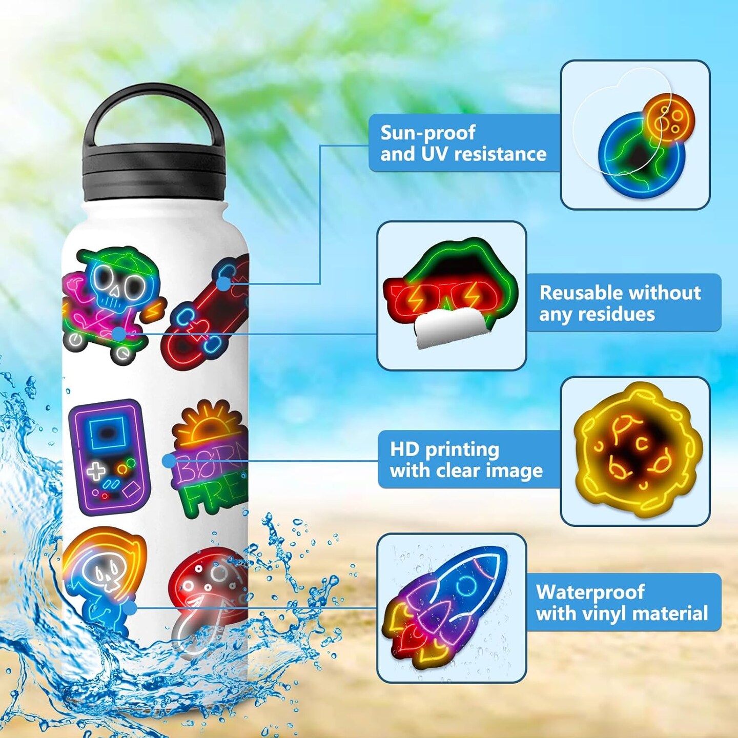Water Bottle Stickers 100 Pcs Cool Cute Neon Sticker Packs
