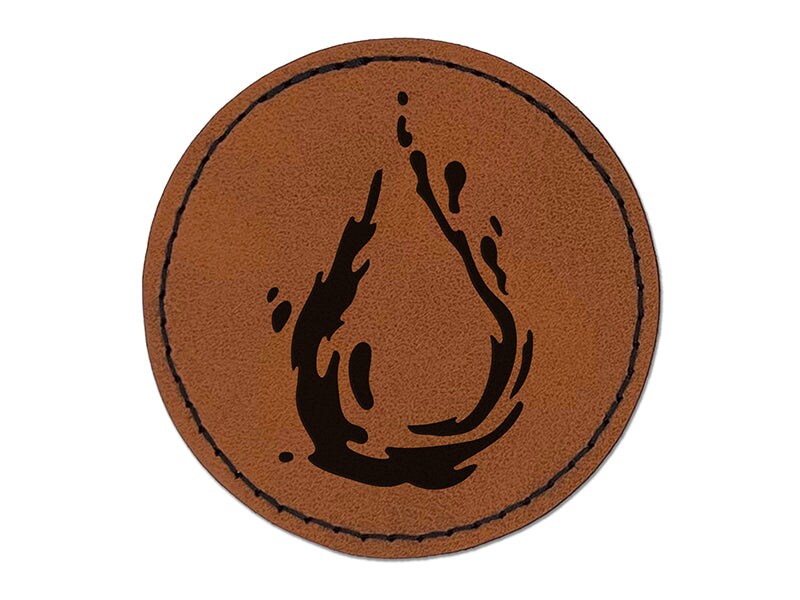 Water Drop Droplet Round Iron-On Engraved Faux Leather Patch Applique - 2.5"