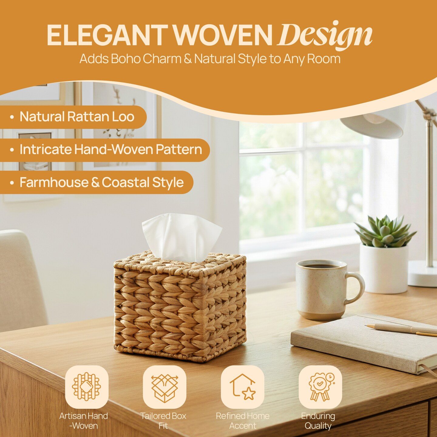 Water Hyacinth Wicker Tissue Box Cover