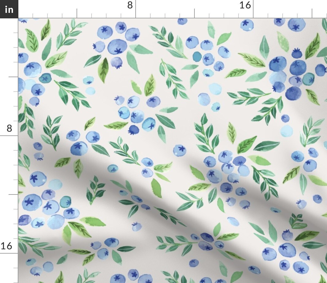 Watercolor Blueberries Blueberry Hand Drawn Fruits Summer Blue Whimsical Custom Printed Fabric by Spoonflower Various Fabrics by the Yard or Fat Quarter