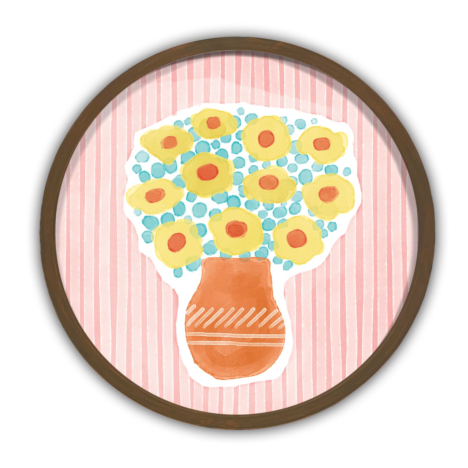 Watercolor Floral Bouquet 20" x 20" Round Brown Framed Print
