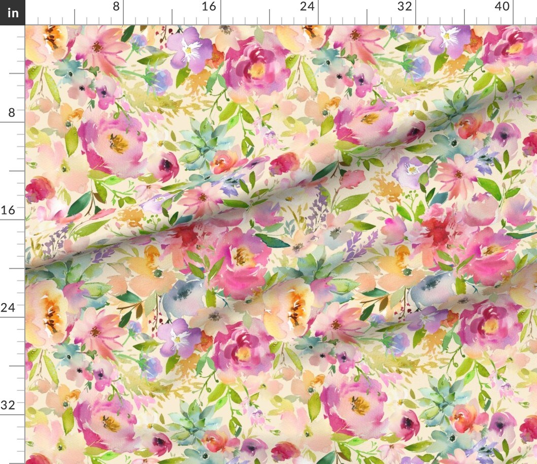 Watercolor Floral Bright Flowers Colorful Spring Summer Rainbow Garden Romantic Nursery Baby Girl Custom Printed Fabric by Spoonflower Various Fabrics by the Yard or Fat Quarter