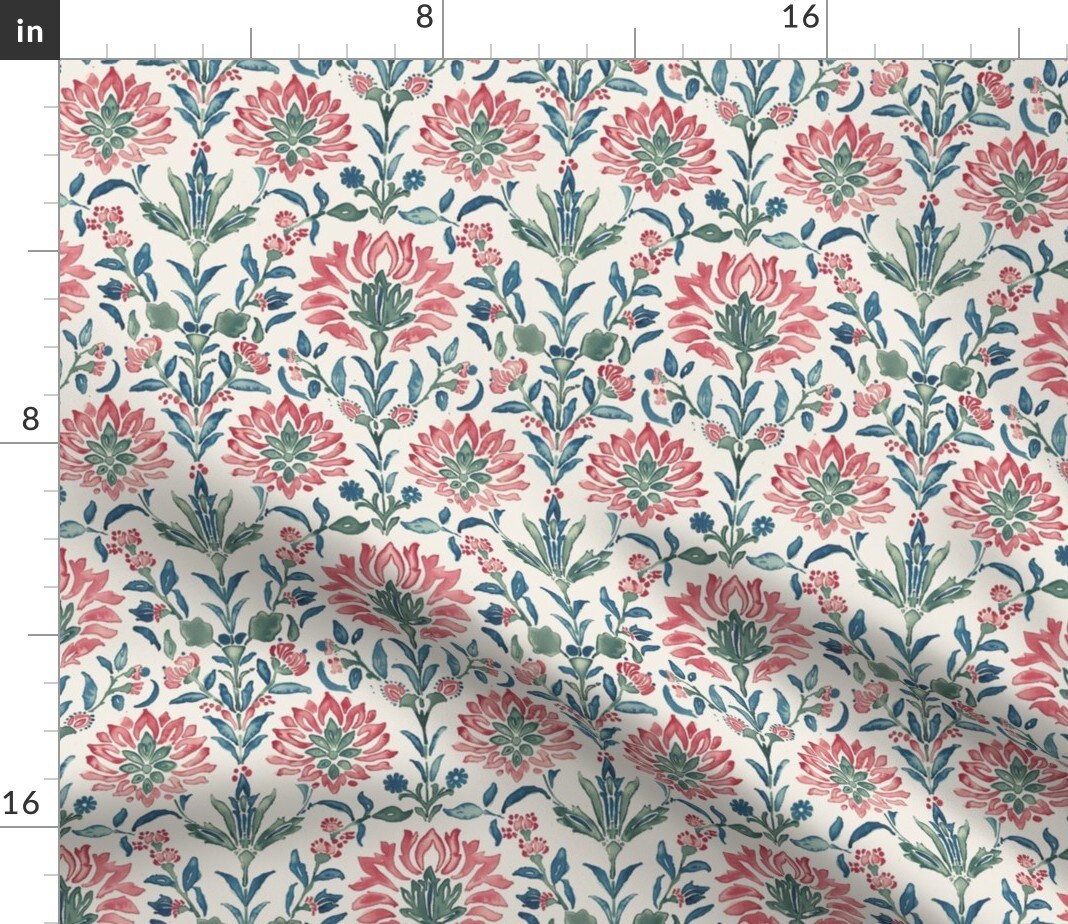 Watercolor Floral Red Blue Green Botanical Flowers Leaves Cottagecore Boho Custom Printed Fabric by Spoonflower Various Fabrics by the Yard or Fat Quarter