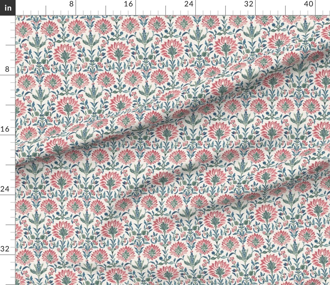 Watercolor Floral Red Blue Green Botanical Flowers Leaves Cottagecore Boho Custom Printed Fabric by Spoonflower Various Fabrics by the Yard or Fat Quarter