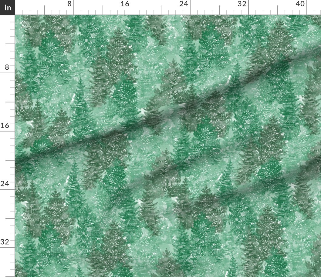 Watercolor Forest Woodland Rustic Evergreen Trees Pine Custom Printed Fabric by Spoonflower Various Fabrics by the Yard or Fat Quarter