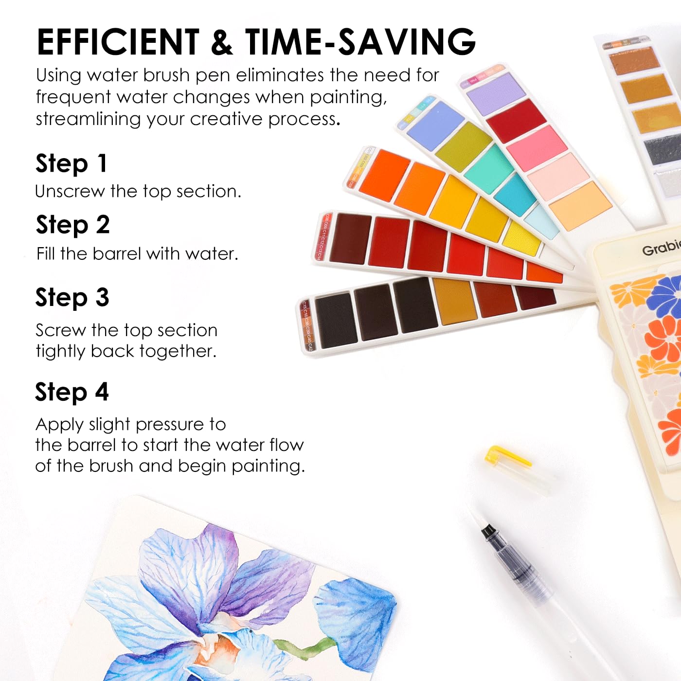 Watercolor Paint Set, 56 Colors Handheld Watercolor Set of Water Brush Pen, Palette and Removable Sponge, Portable Watercolor Paint for Artist Beginner and Professional