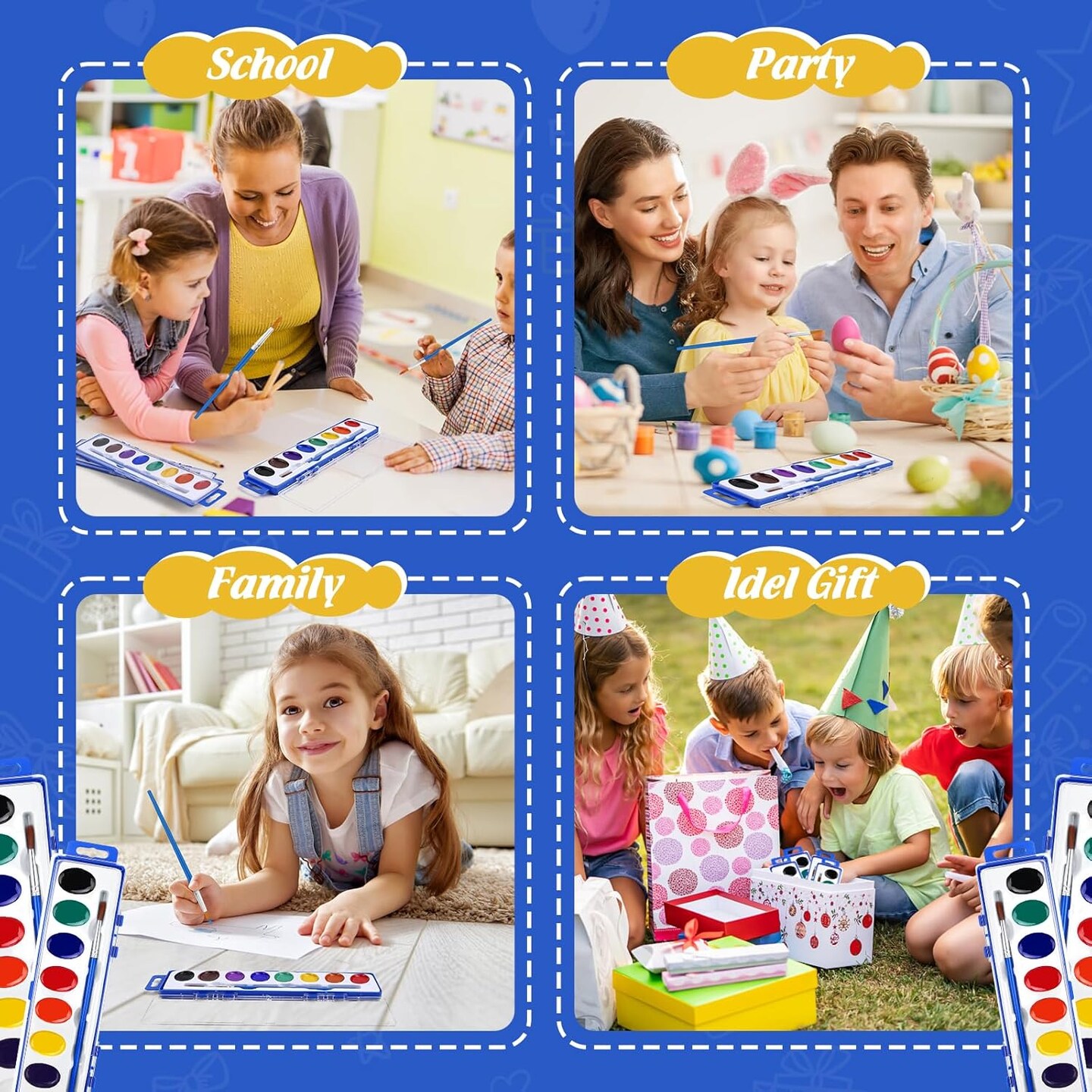 Watercolor Paint Set Bulk,3 Pack,8 Colors Watercolors Paint with Paintbrush.Washable Watercolor Paint Set Kids