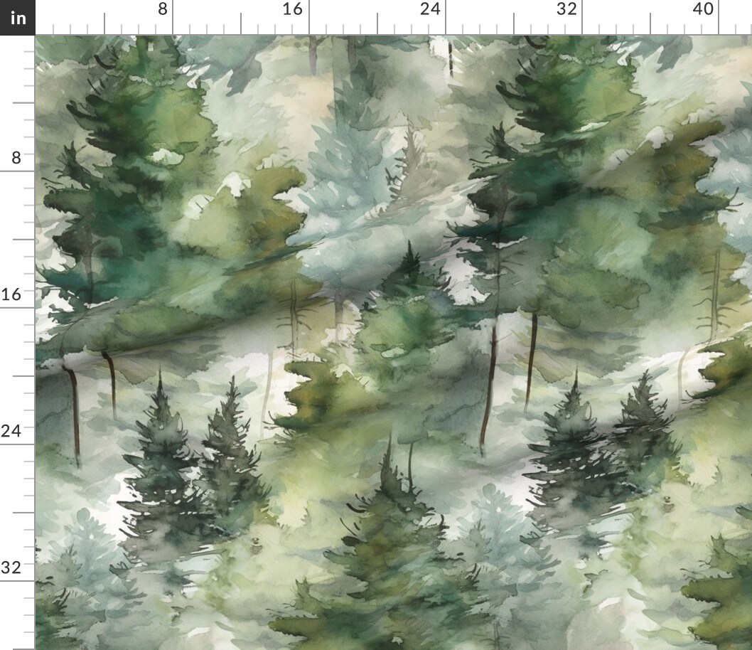 Watercolor Pine Tree Forest Woodland Tranquil Peaceful Woods Trees Rustic Nature Green Custom Printed Fabric by Spoonflower Various Fabrics by the Yard or Fat Quarter 15044019