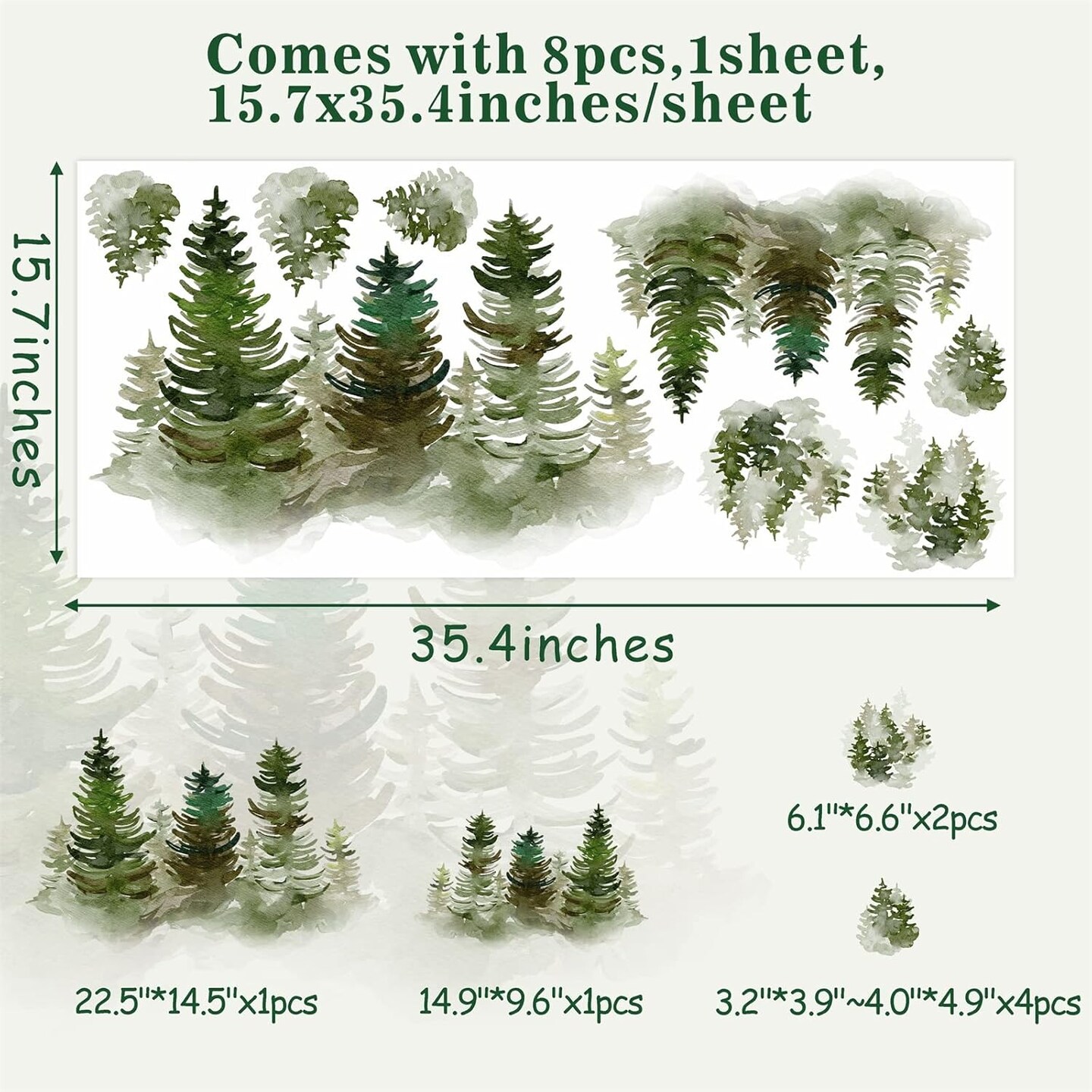 Watercolor Pine Tree Wall Decals