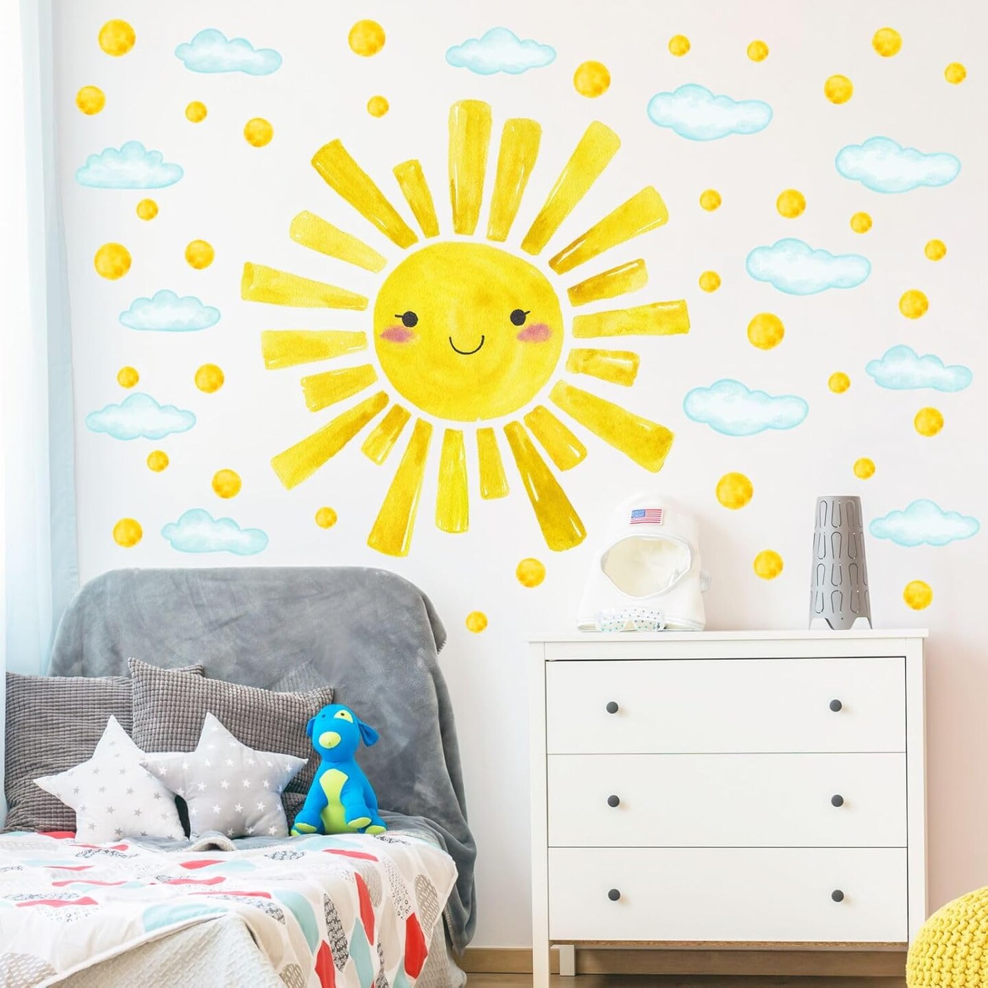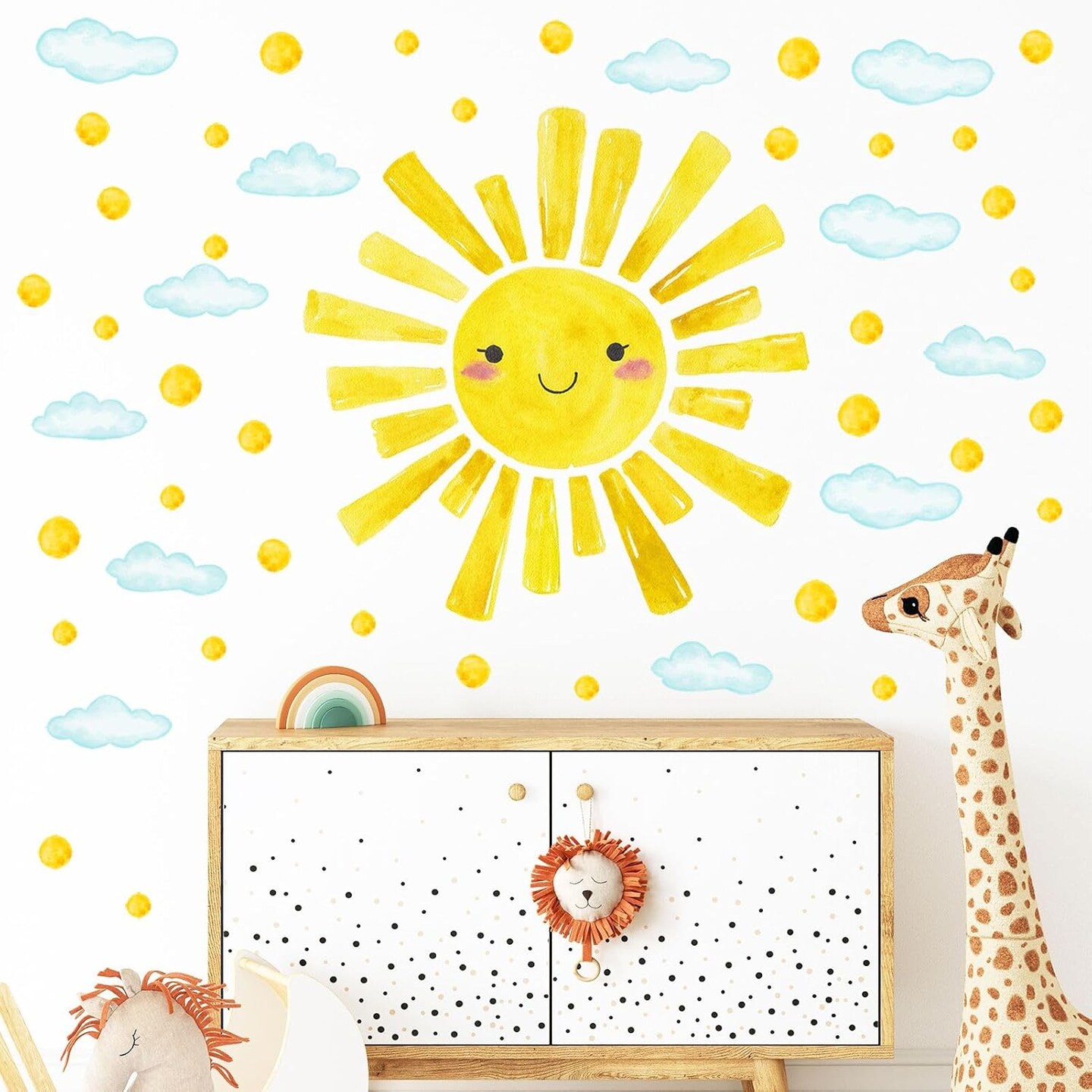 Watercolor Sun & Cloud Wall Decals – 12-Piece Polka Dot Stickers for Kids’ Bedroom & Nursery, 14.5"x11.5"