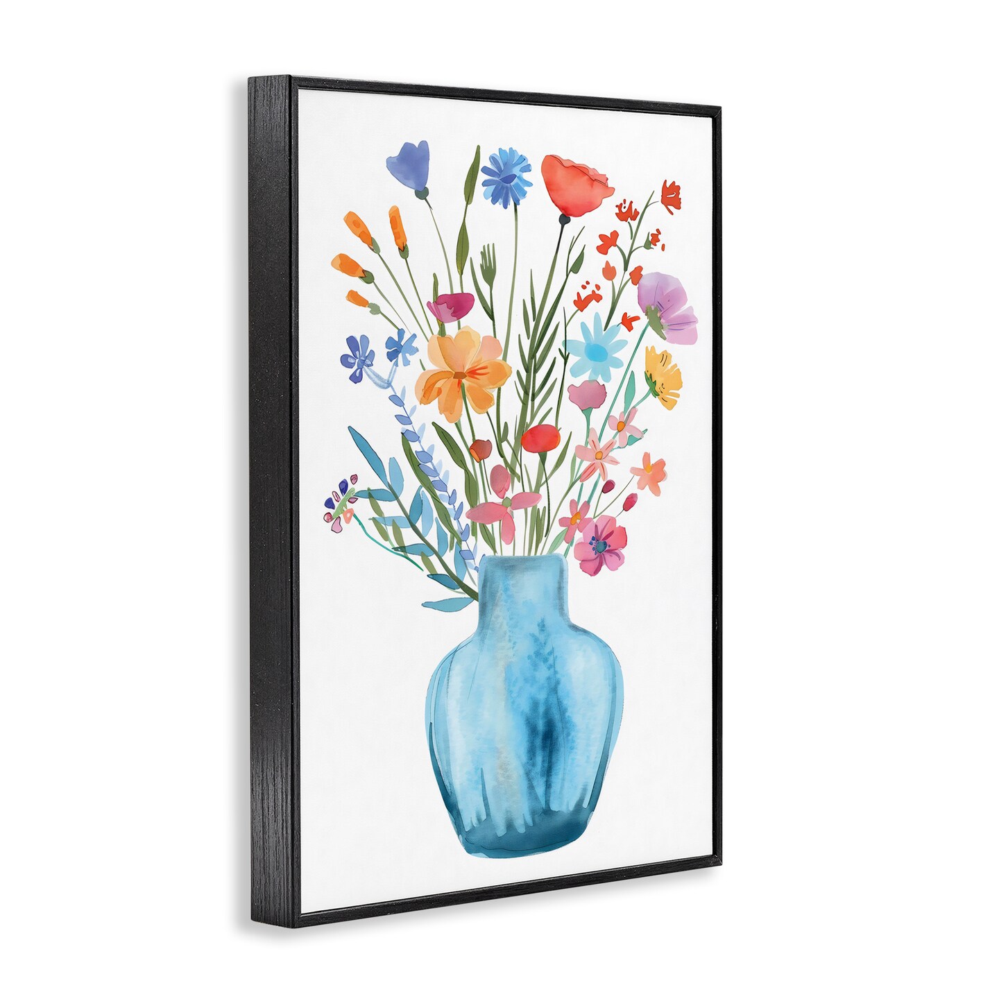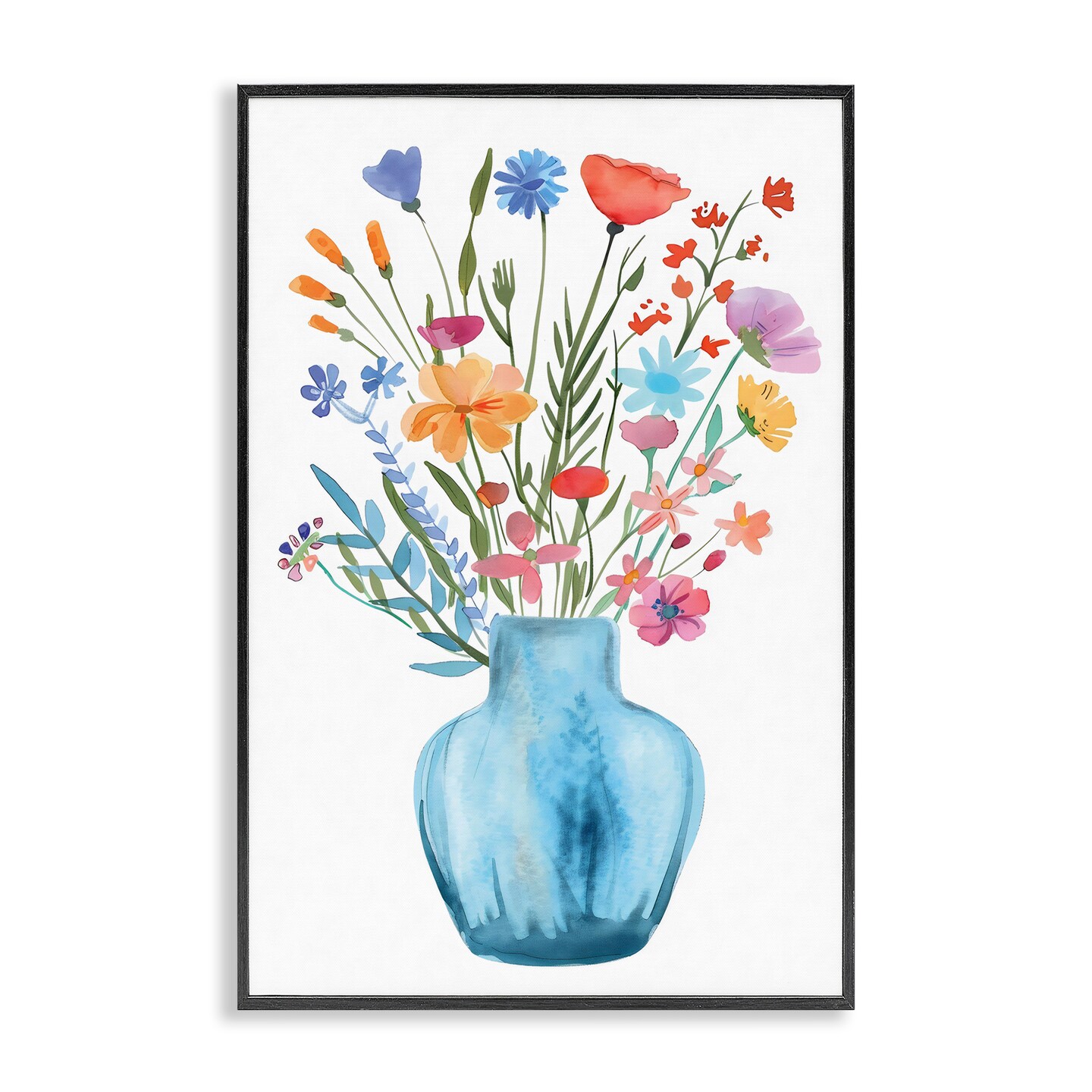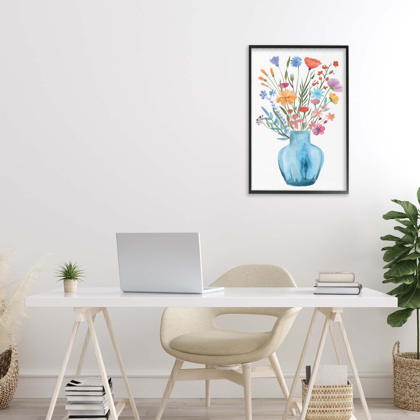 Watercolor Vase Blue Bouquet Framed Giclee Art