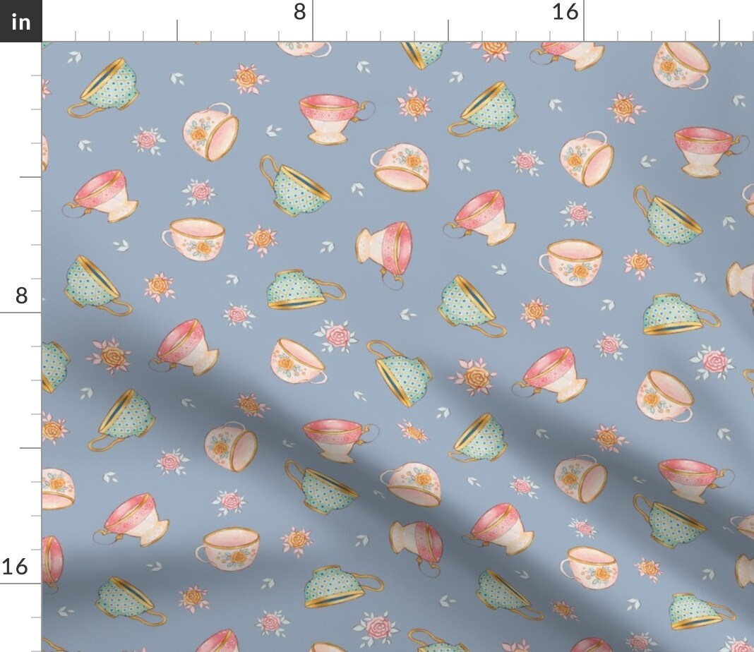 Watercolor Victorian Edwardian Regency Teacups Coffee Cup Floral Custom Printed Fabric by Spoonflower Various Fabrics by the Yard or Fat Quarter