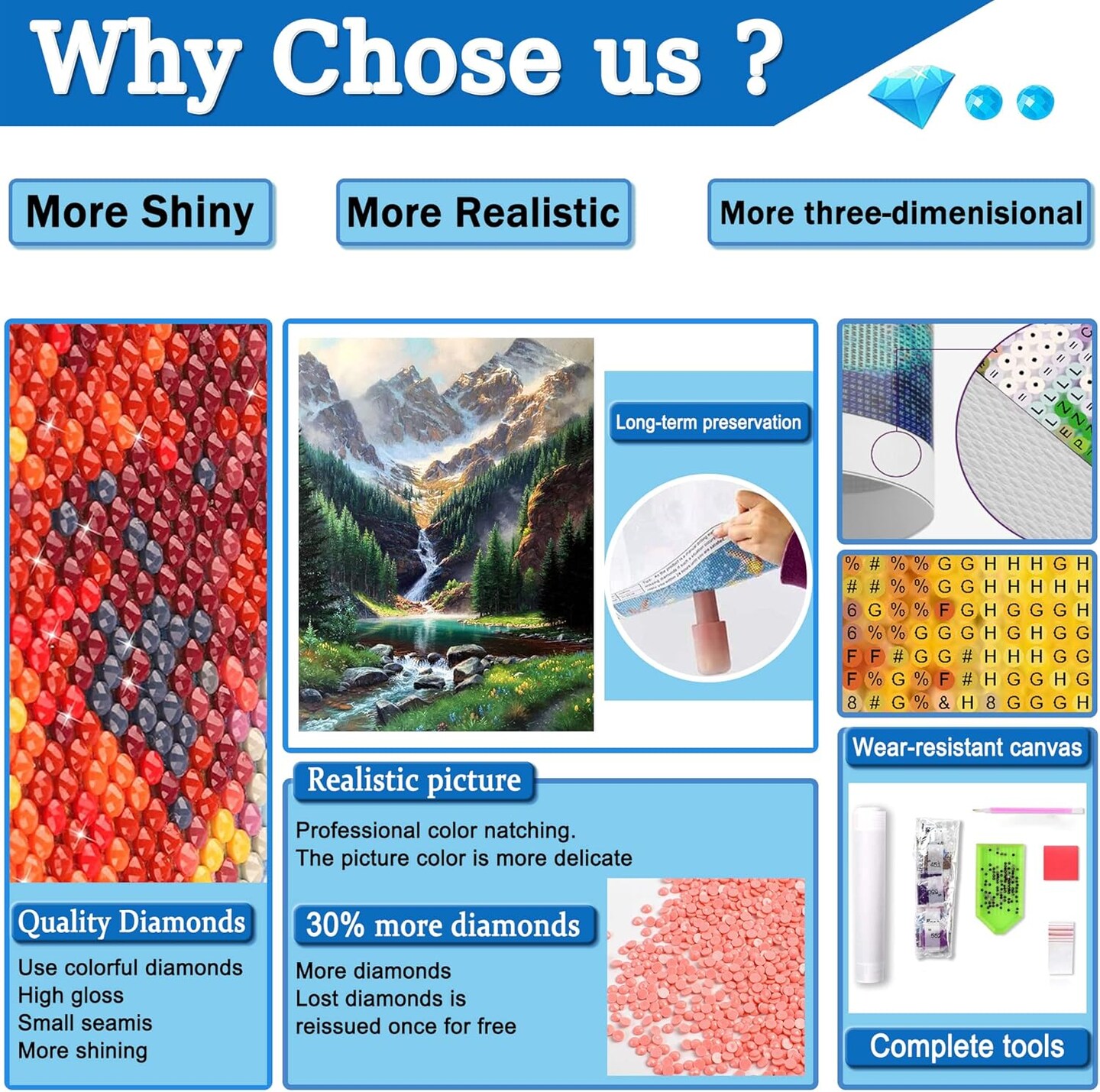 Waterfall & Mountain 5D Diamond Painting Kit – Full Drill DIY Diamond Art for Adults | Scenery Gem Art for Home Wall Décor 12 x 16 Inch