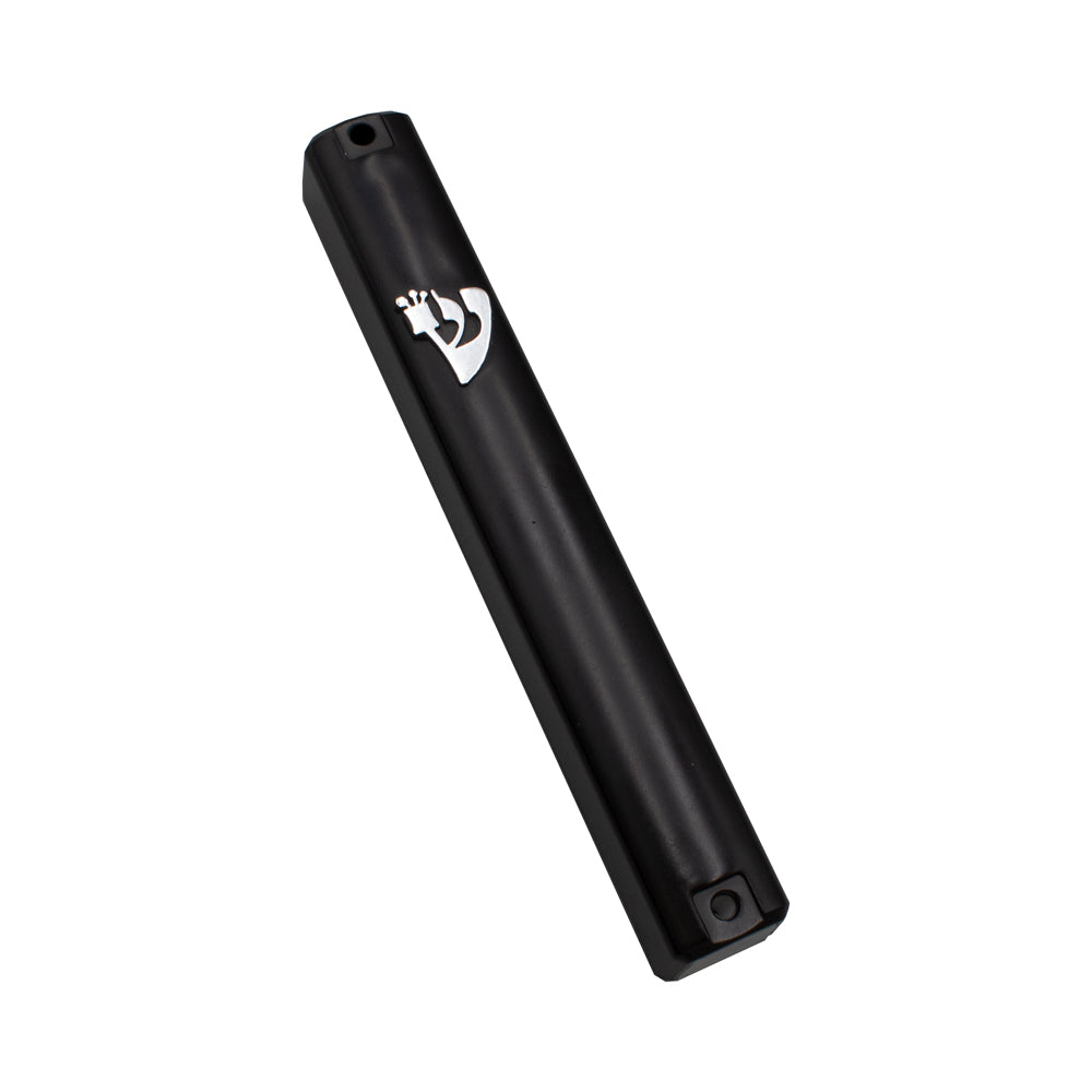 Waterproof Mezuzah Case Black with Silver Shin
