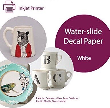 Waterslide Decal Paper for Inkjet Printer - WHITE 8.5"x11" Sheets Water Slide Transfer Paper for DIY Tumblers, Mugs, Glass, Ceramics