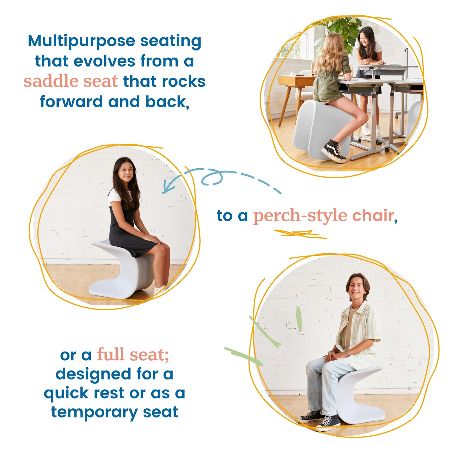 Wave Seat, 18in - 19.6in Seat Height, Perch Stool