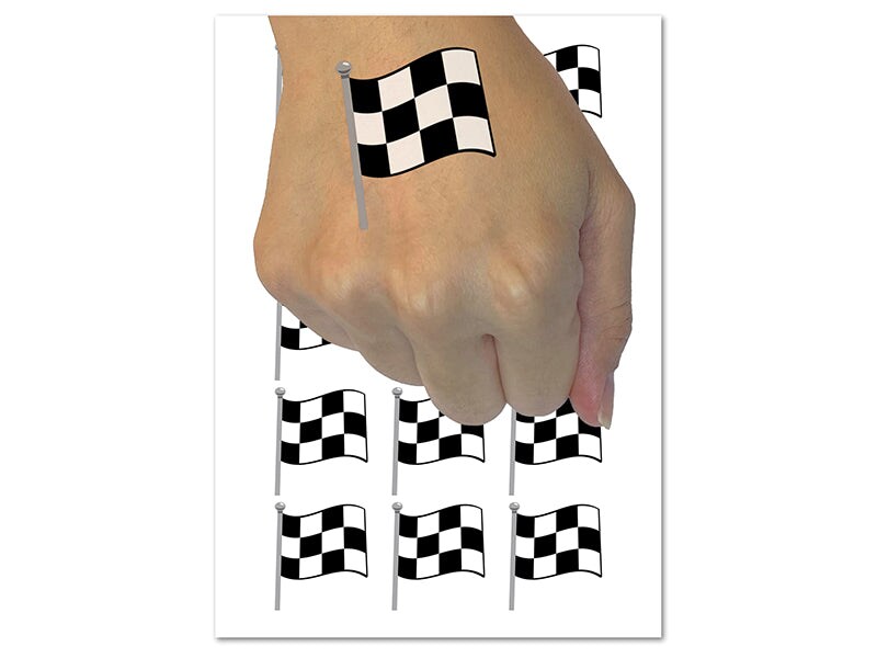 Waving Checkered Flag Temporary Tattoo Water Resistant Fake Body Art Set Collection (1 Sheet)