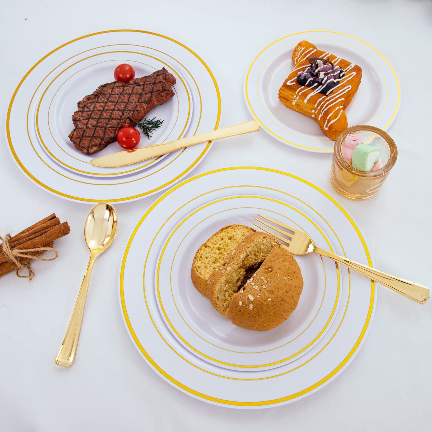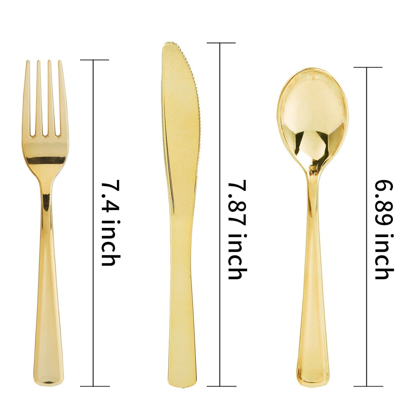 WDF300 Pieces Gold Plastic Silverware Disposable Gold Cutlery, Silverware Set Includes 100 Forks, 100 Spoons, 100 Knives -WDF