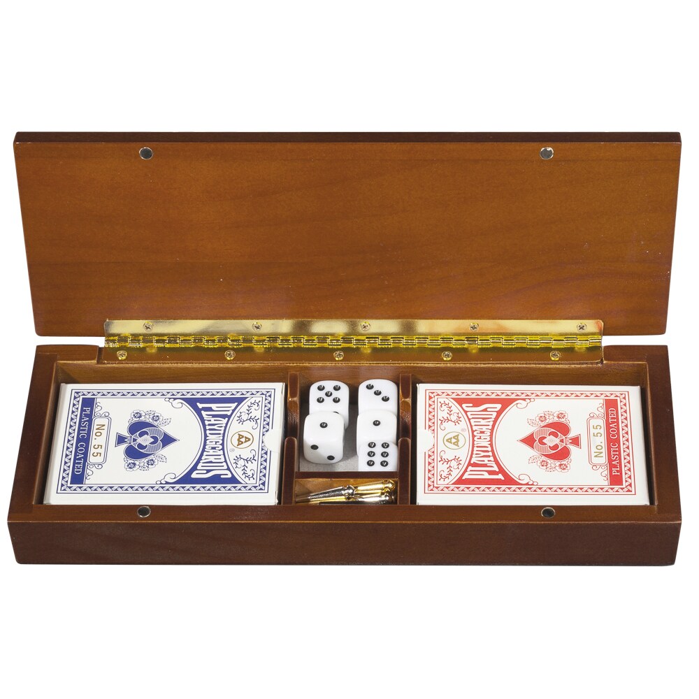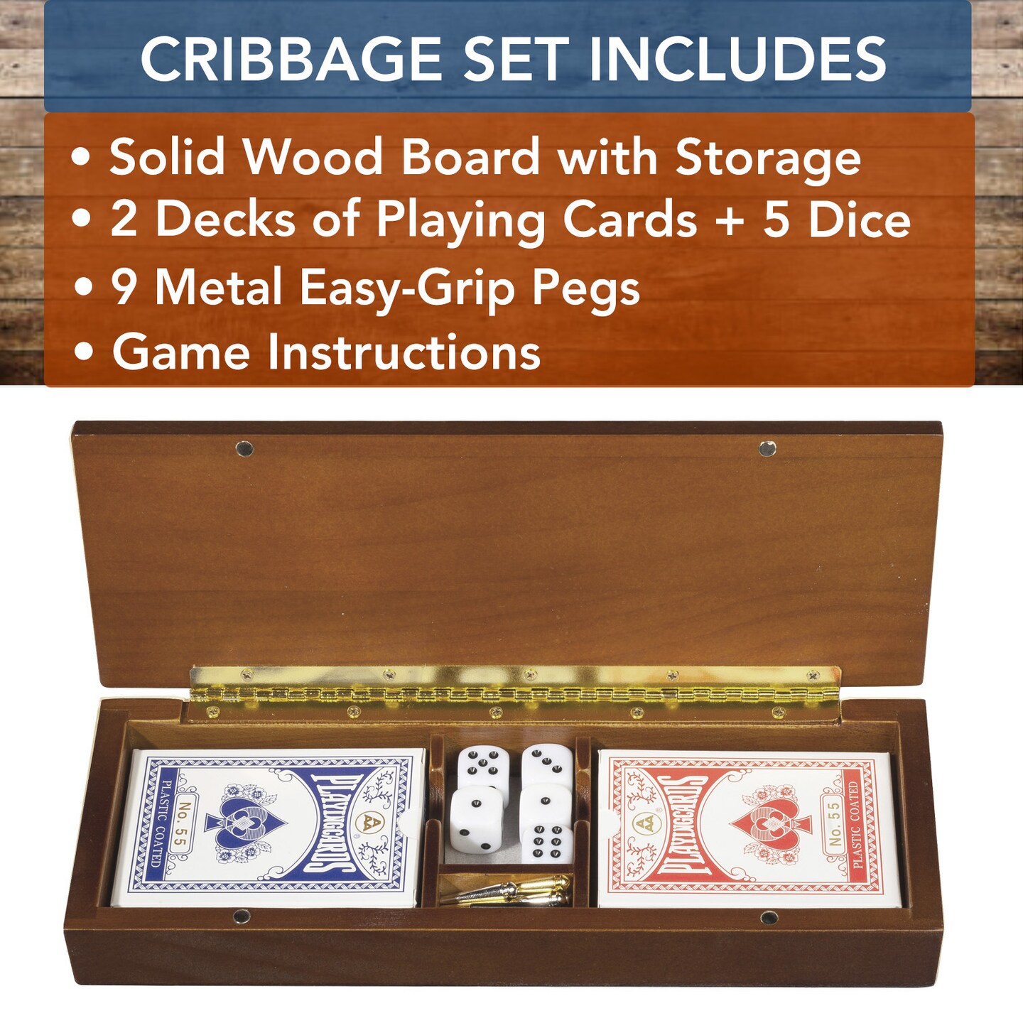 WE Games 3 Player Wooden Cribbage Set - Easy Grip Pegs and 2 Decks of Cards Inside of Board