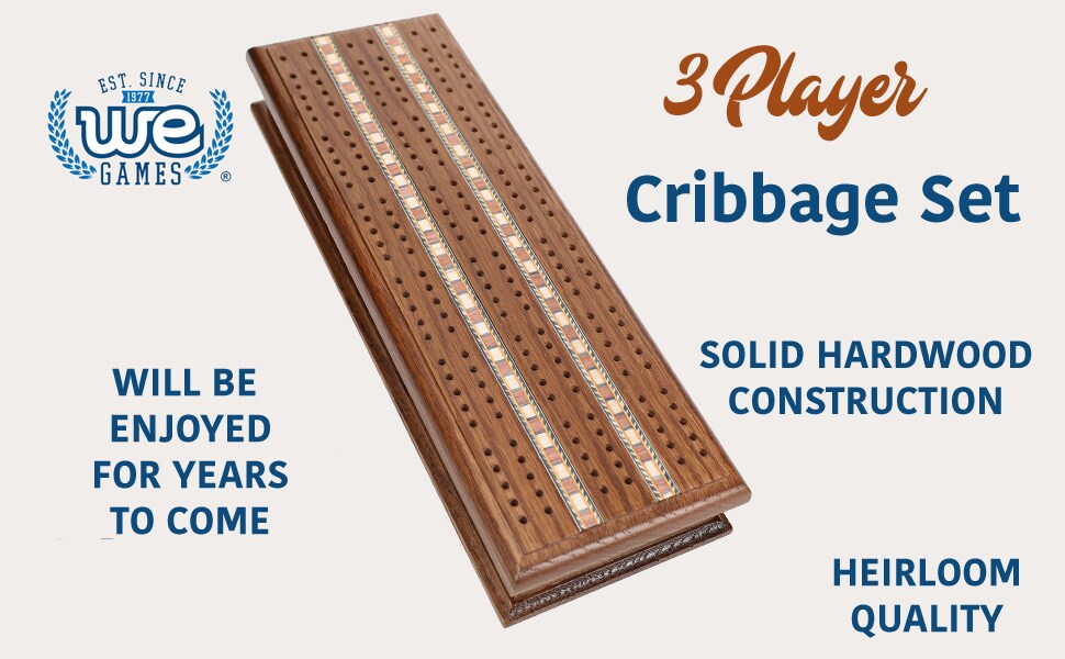WE Games 3 Track Sprint Cabinet Cribbage Set with Metal Pegs & 2 Card Decks